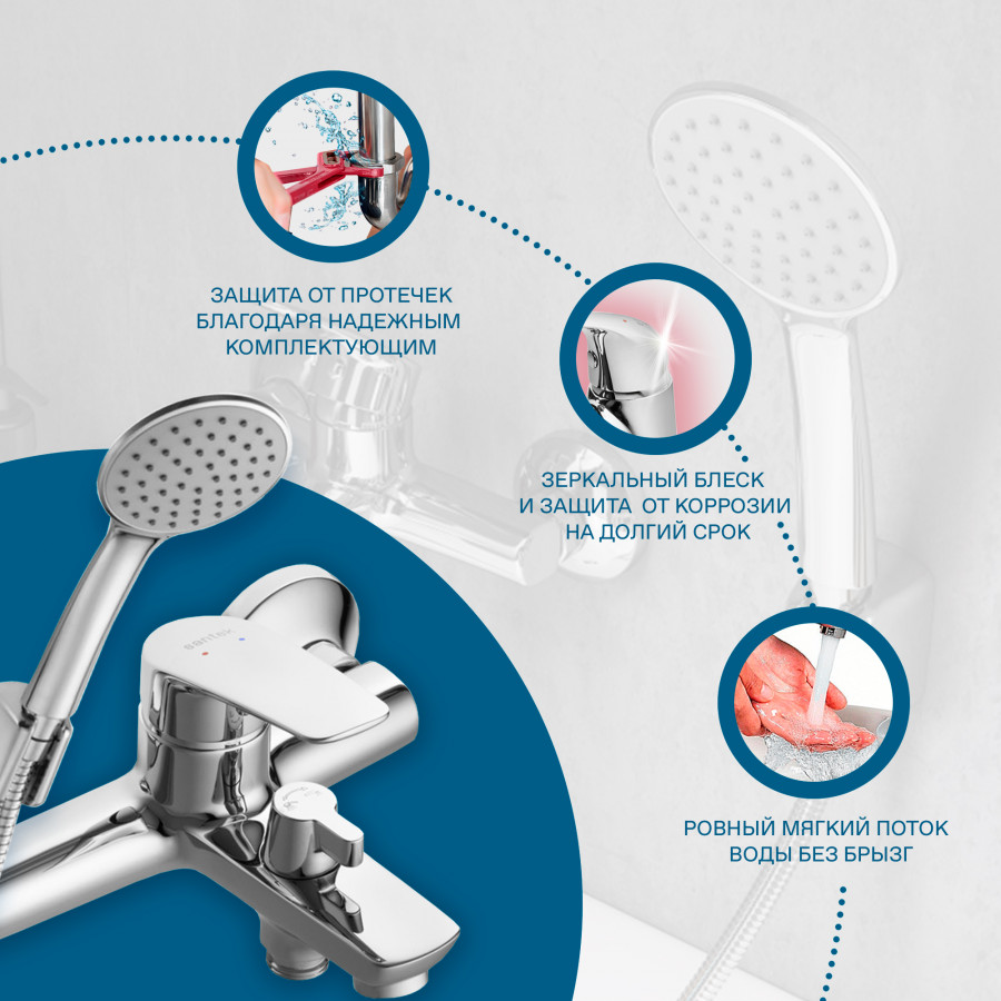 Смеситель для ванны и душа Santek Марион хром с душевым гарнитуром (WH5A1006C001)