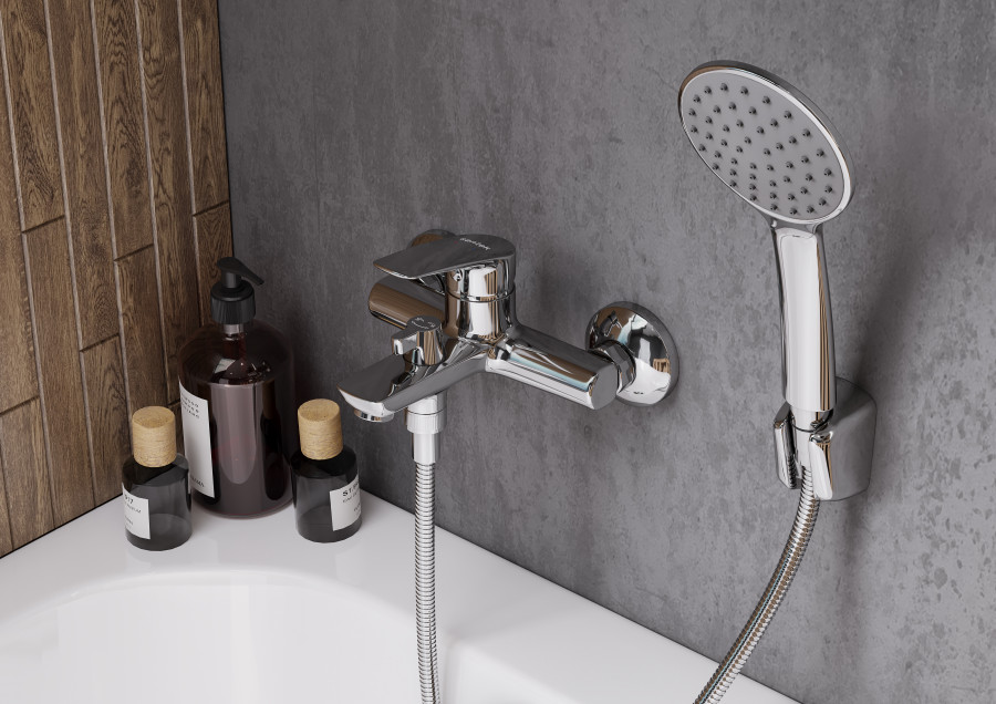 Santek Марион Смеситель однорычажный для ванны-душа, хром, - настенный монтаж, - душевой набор в комплекте: лейка D100 мм, шланг 1.5 м, настенный держатель, - поворотный керамический переключатель ванна/душ: надежное и удобное переключение режимов потока воды независимо от давления в системе водопровода, - подключение душевого шланга 1/2, - S образные эксцентрики в комплекте, - керамический картридж D35 мм, плавный ход рычага смесителя, контроль и точность при выборе напора и температуры воды, - долгий срок службы, герметичность и безопасность для здоровья за счет использования высококачественных материалов и надежных компонентов, - хромированная поверхность, зеркальный блеск и защита от коррозии на долгий срок.
