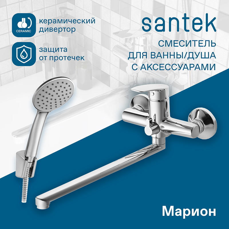 Смеситель для ванны и душа Santek Марион с душевым комплектом хром (WH5A12006C001)