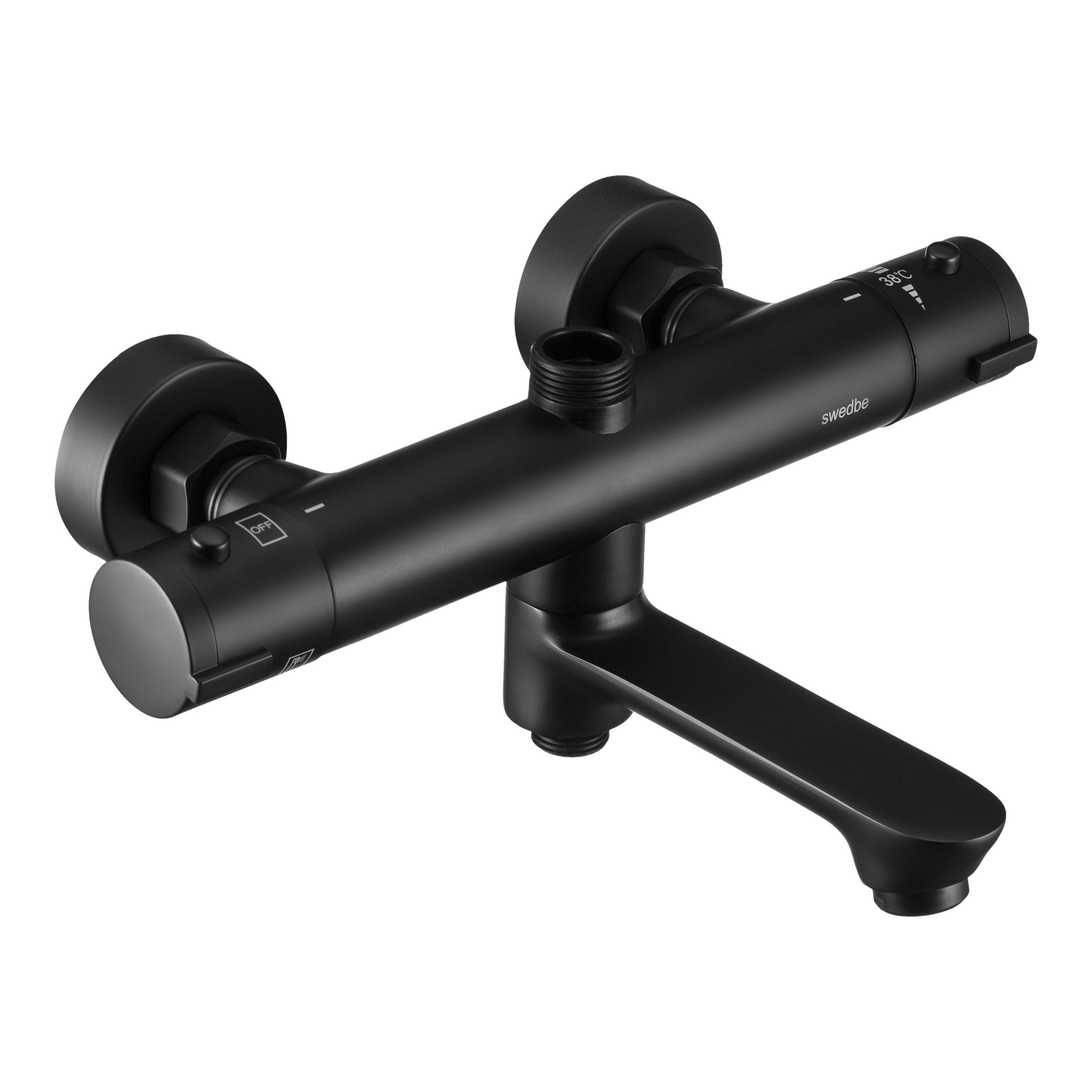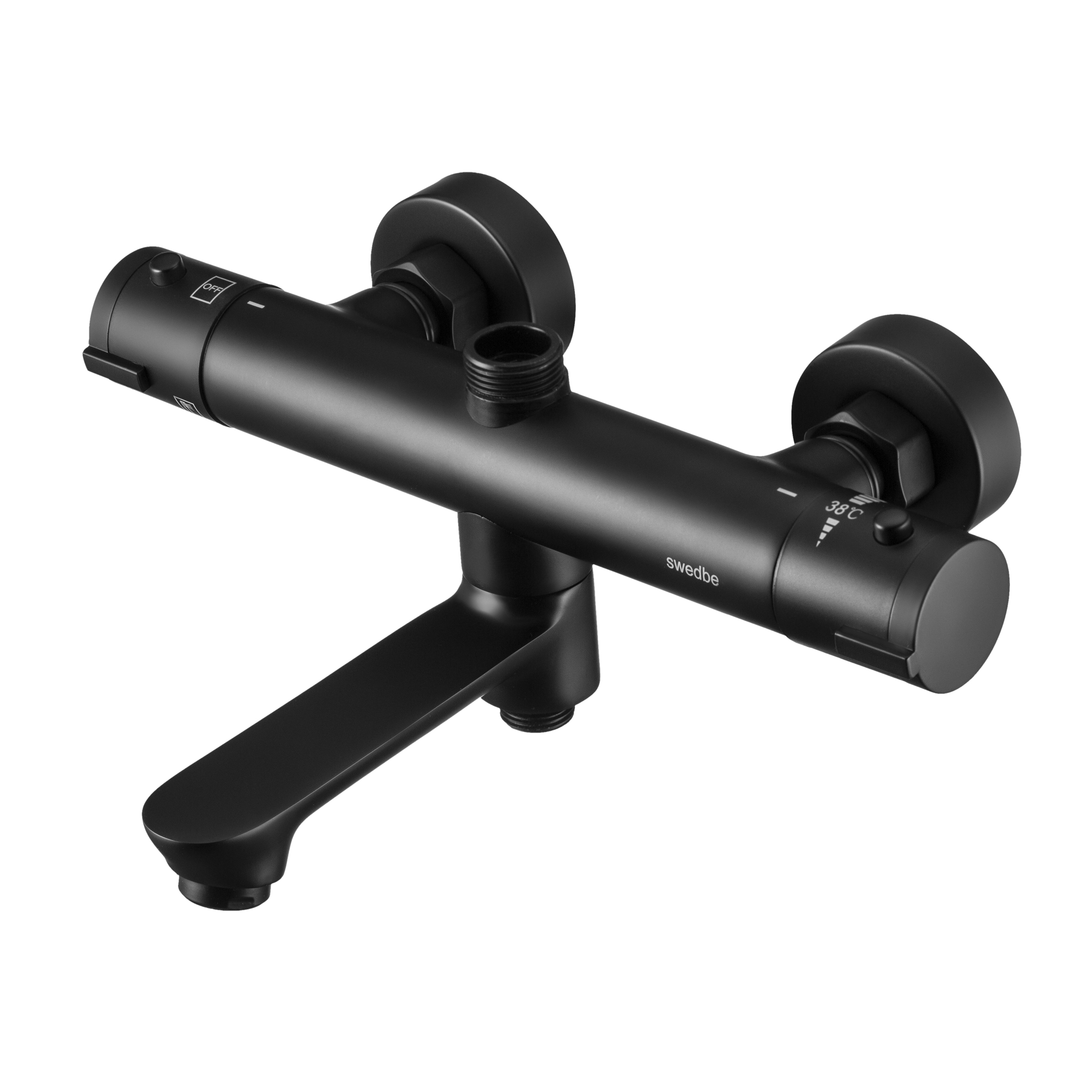 Смеситель для ванны и душа Swedbe Hermes термостат с повортн.изливом черный (9042B)