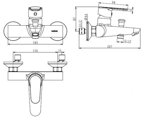 Смеситель для ванны и душа Swedbe Mars (1730)