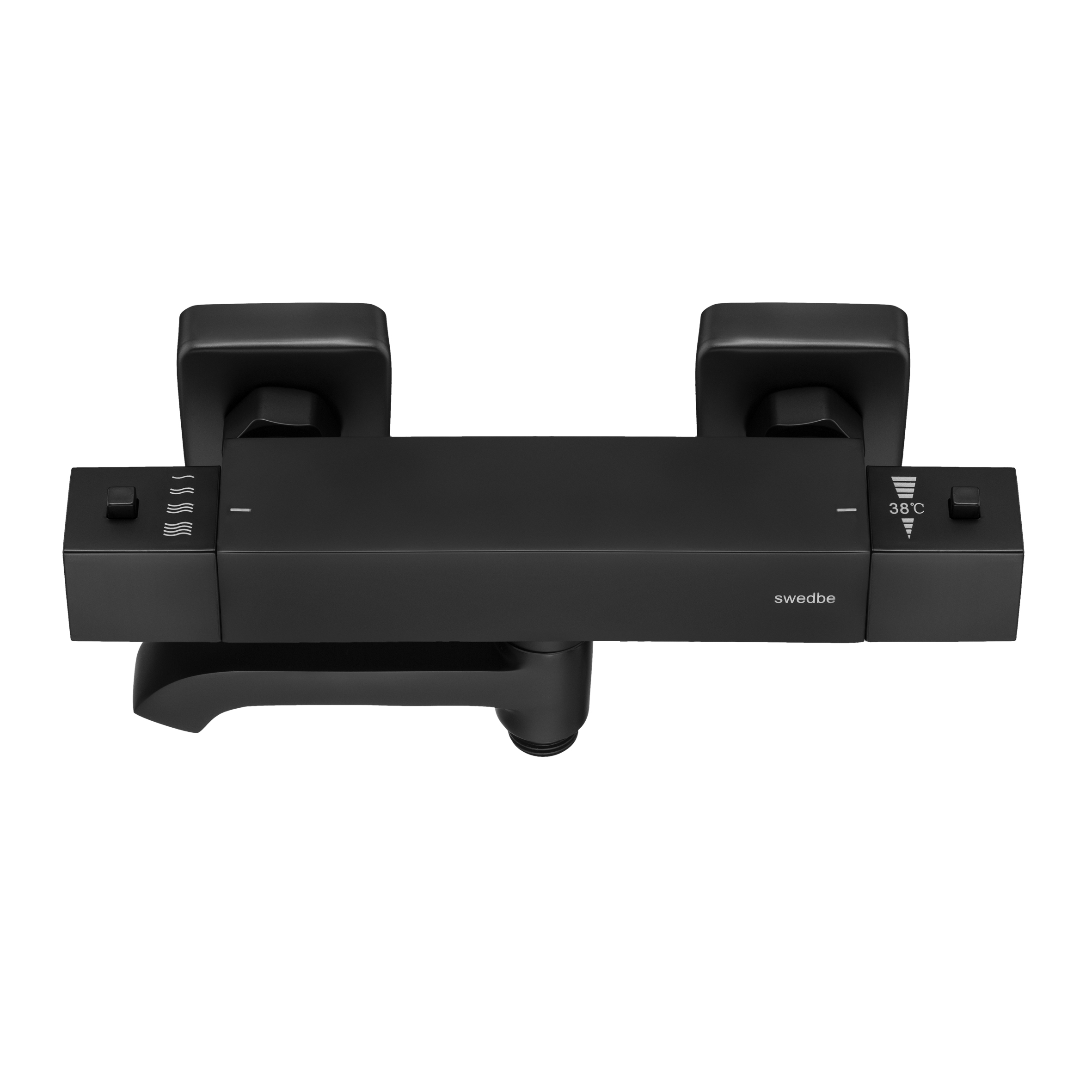Смеситель для ванны и душа Swedbe Mercury термостат, с повортн.изливом черный (9062B)