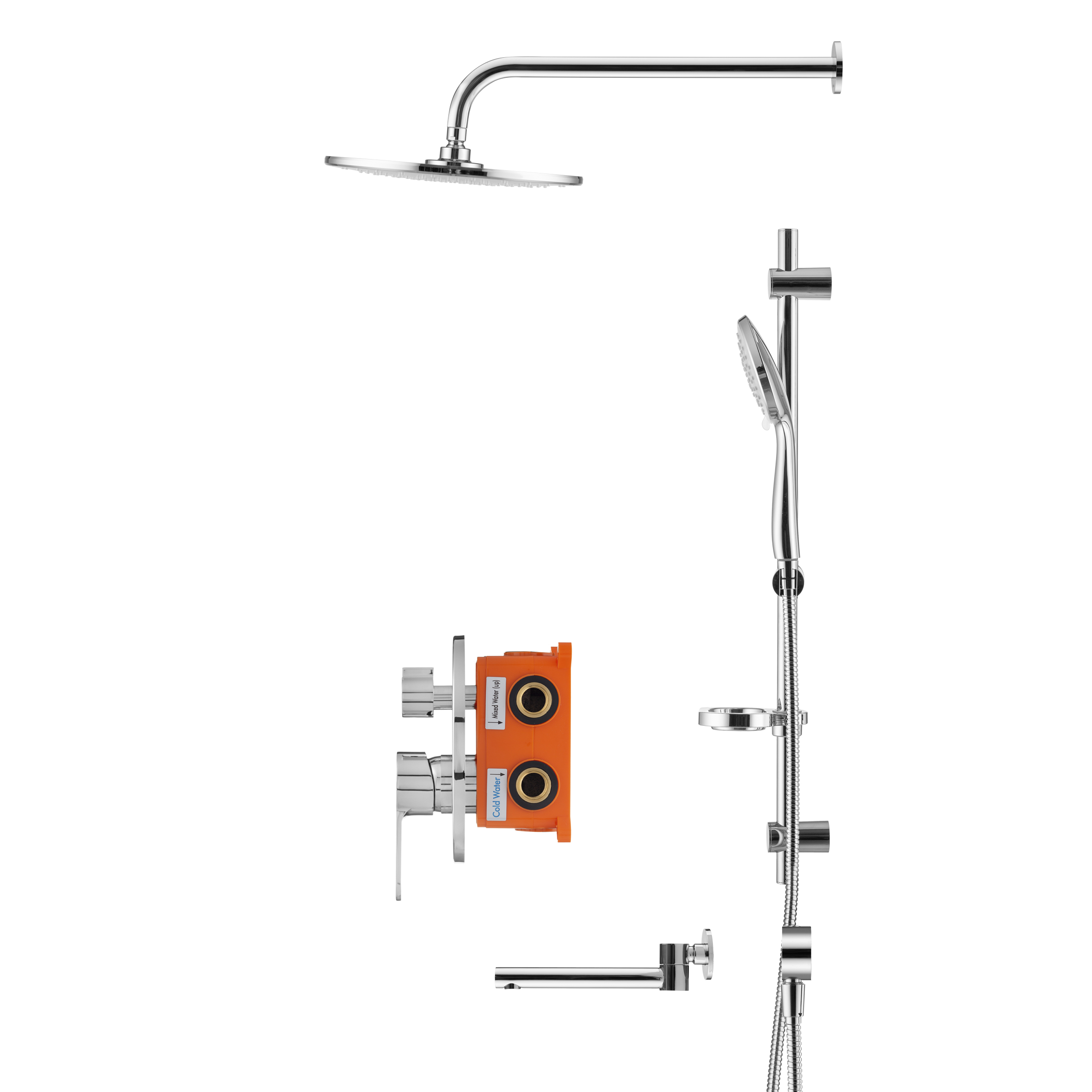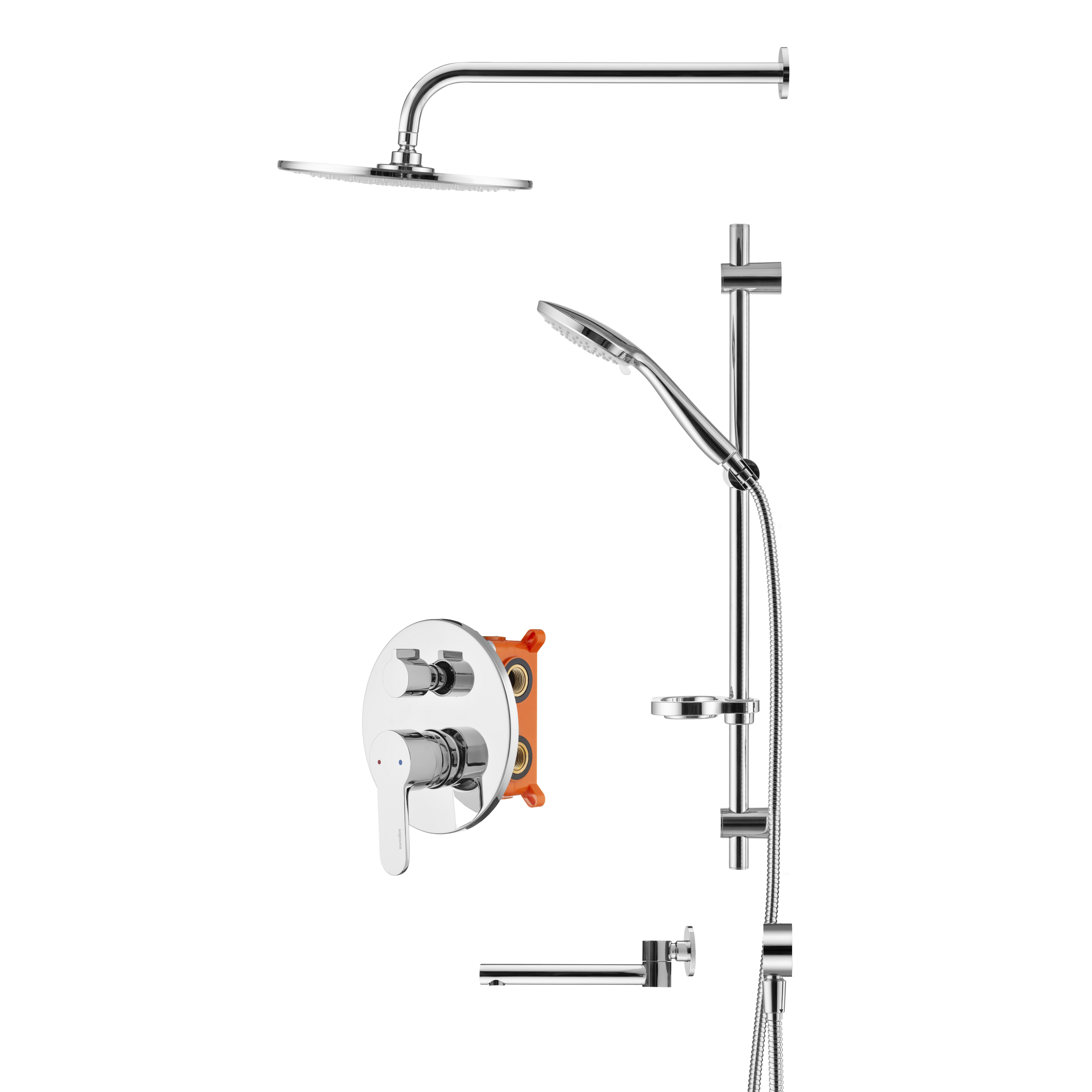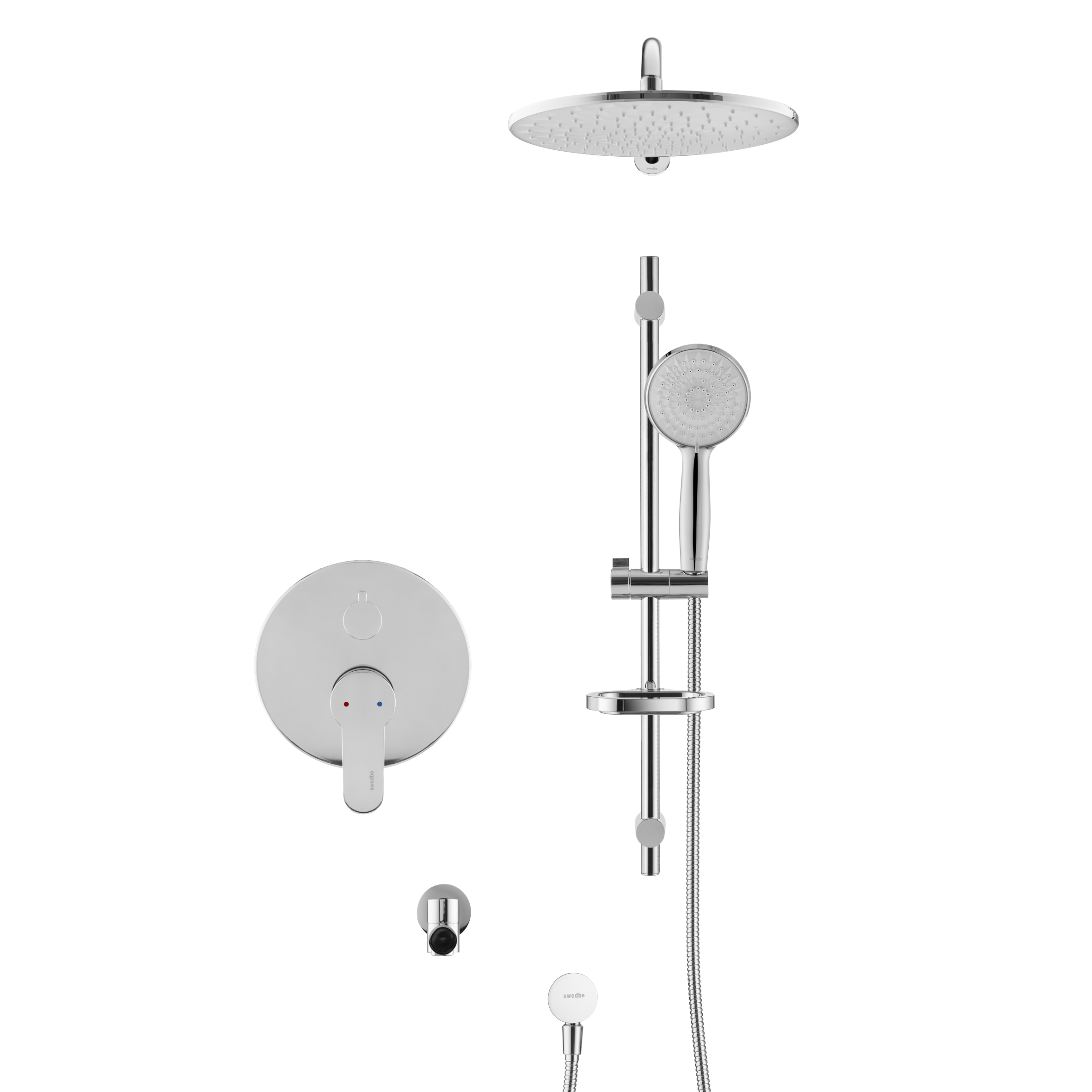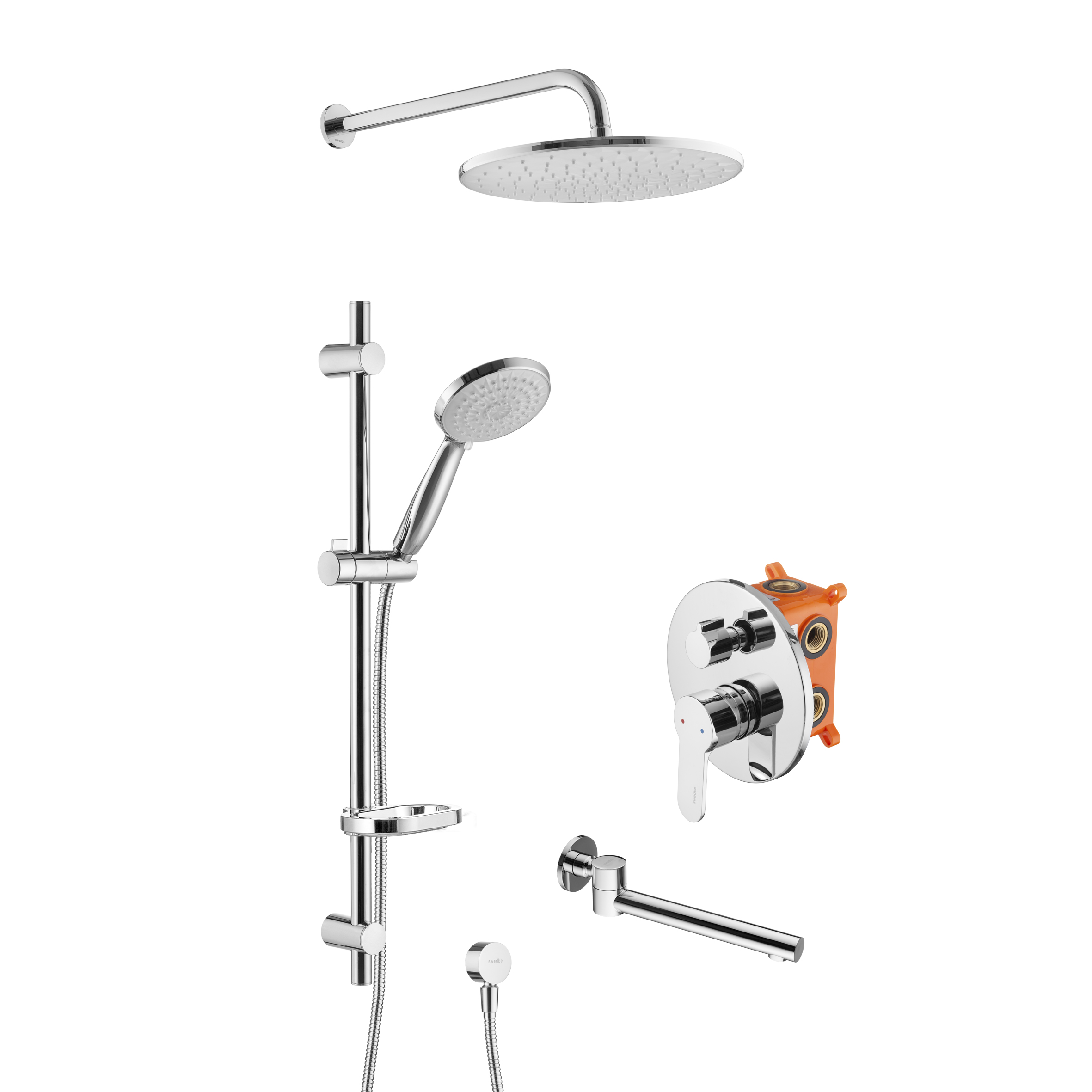 Смеситель для ванны и душа Swedbe Platta встраиваемый с верхним душем и повортн.изливом хром (5542)