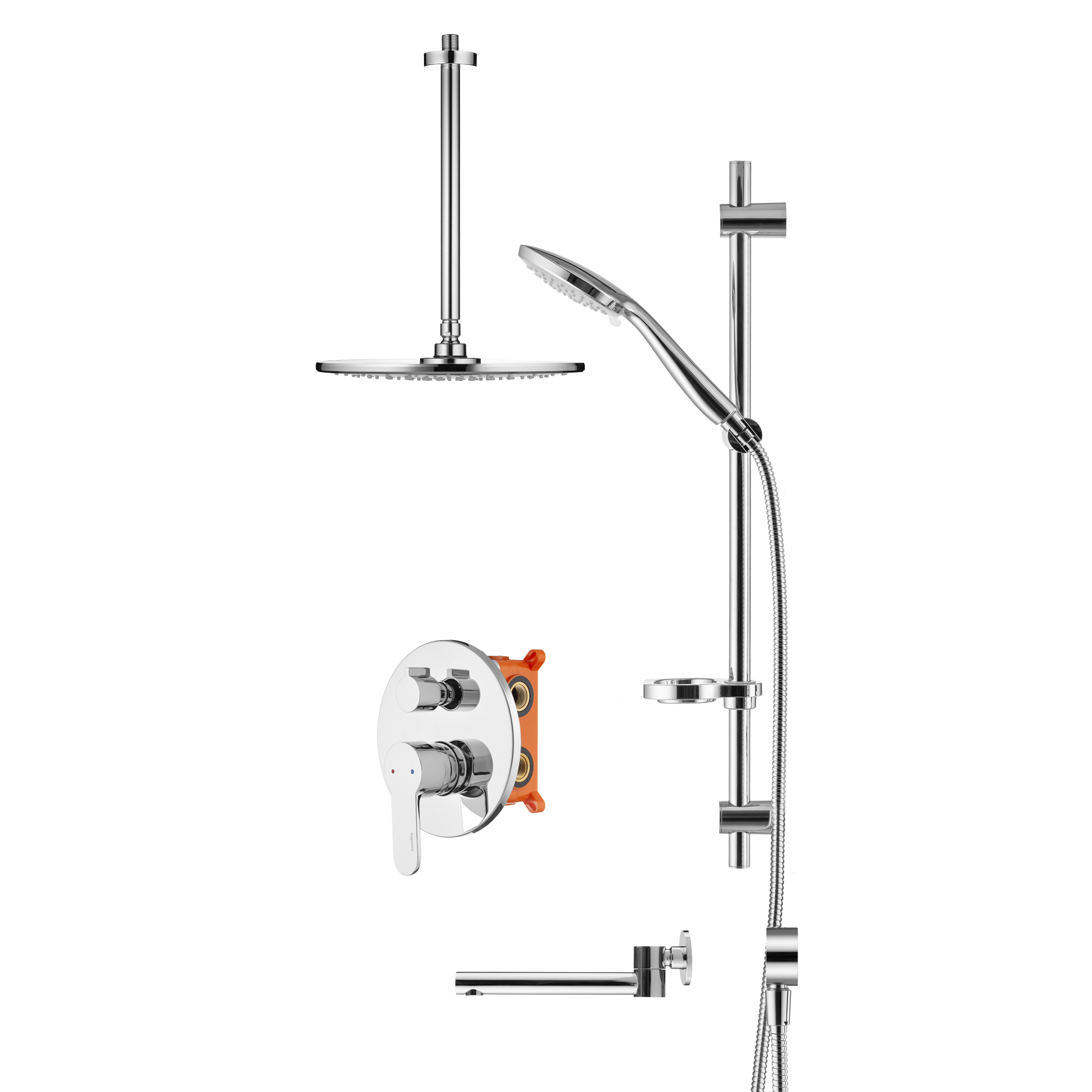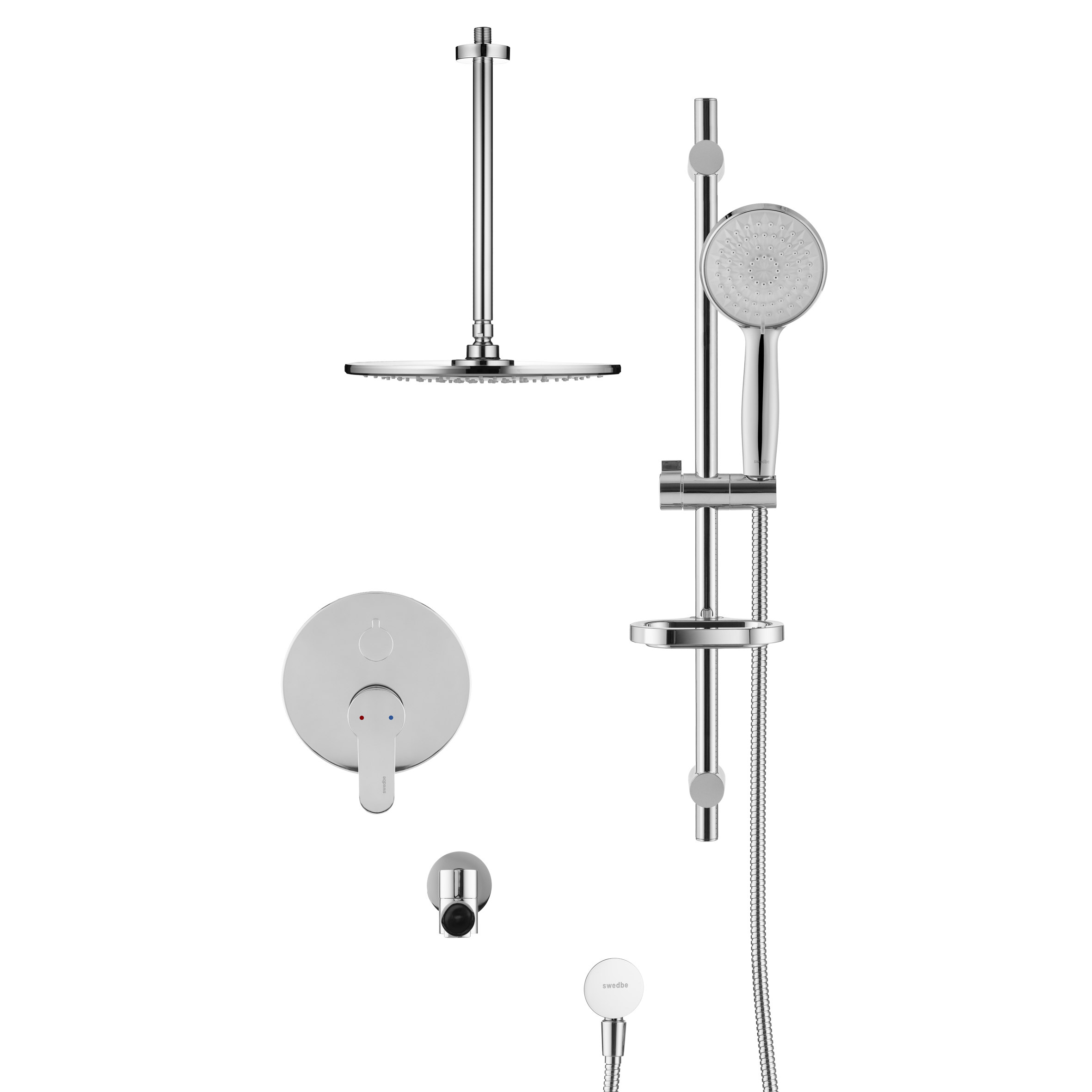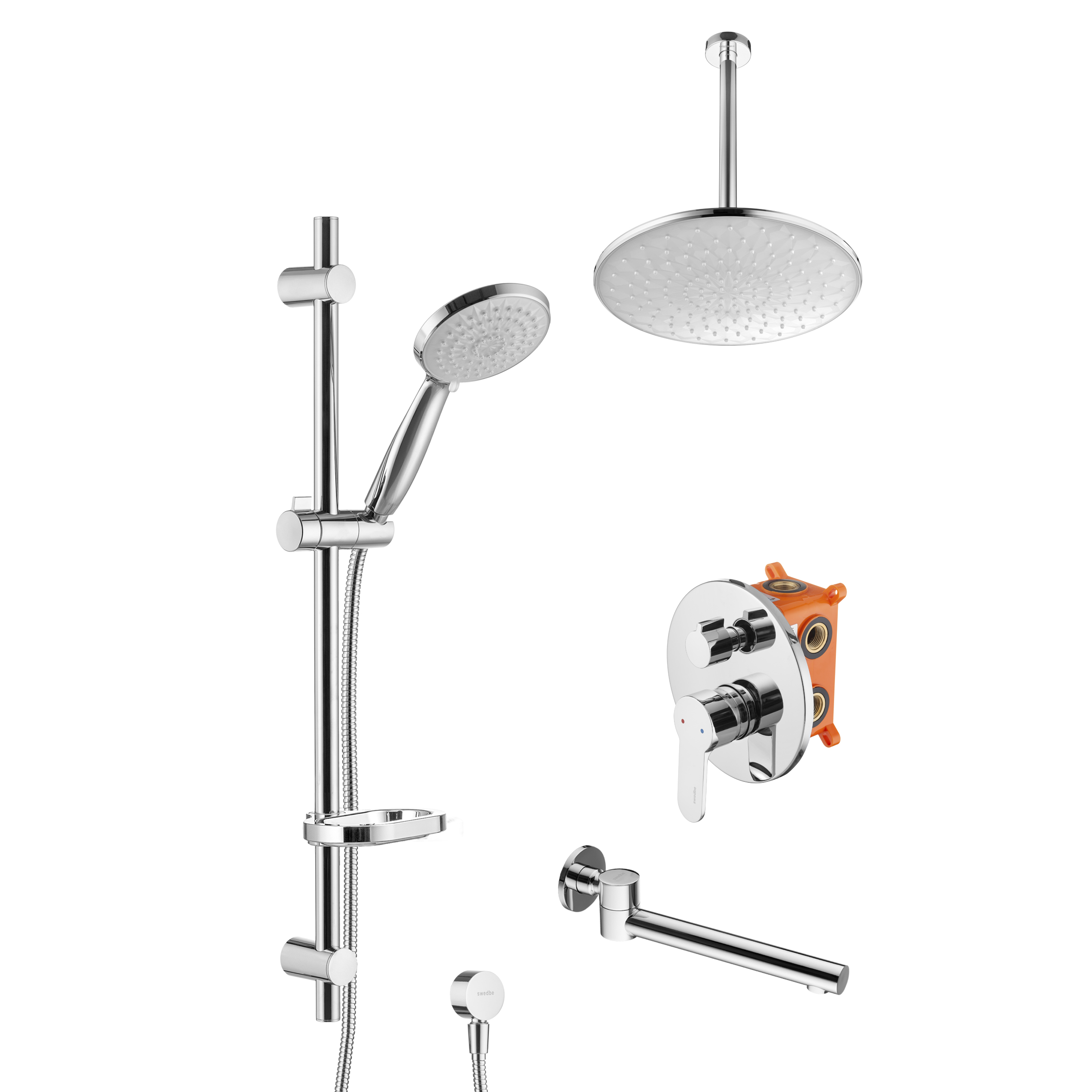 Смеситель для ванны и душа Swedbe Platta встраиваемый с верхним душем и повортн.изливом хром (5543)