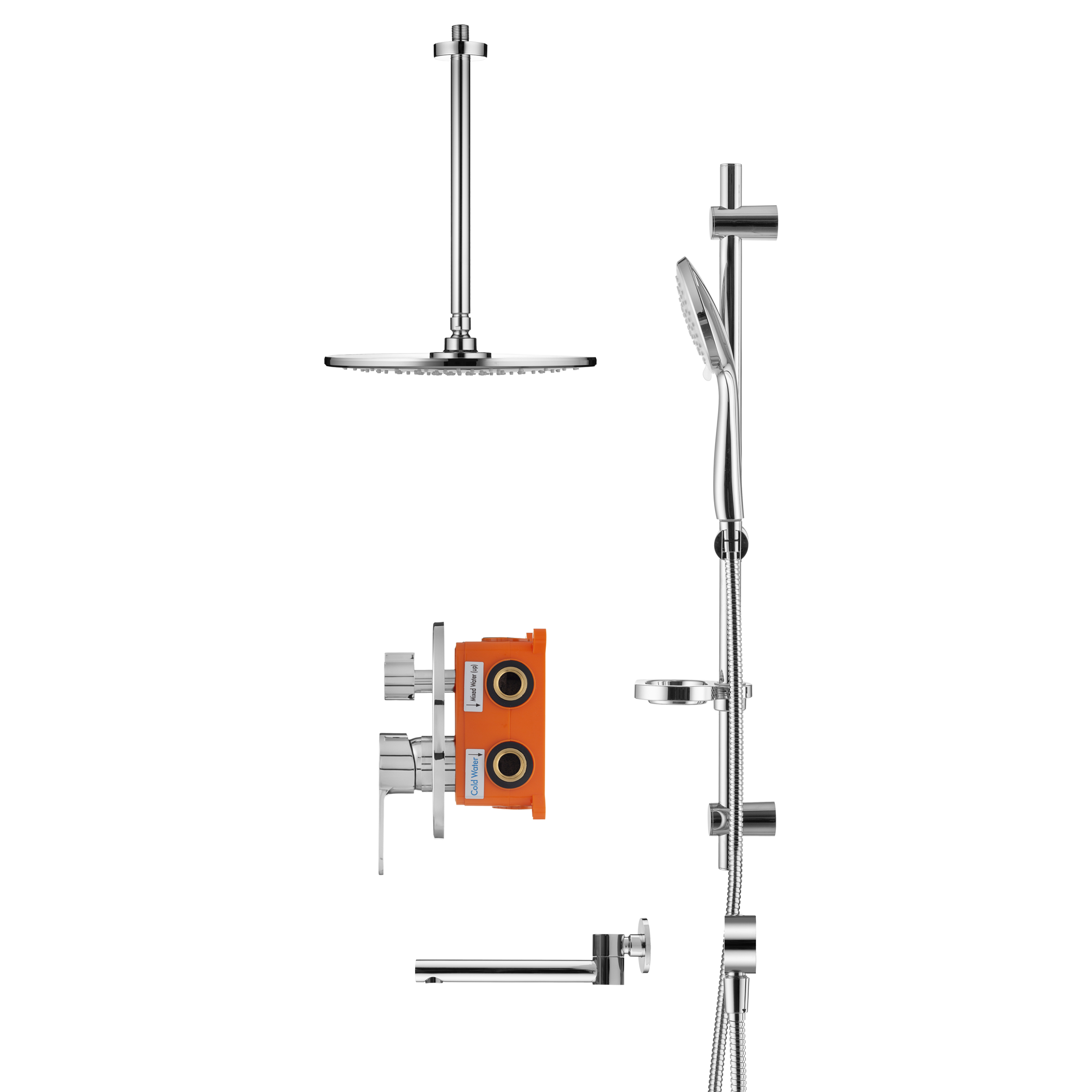- верхний душ (душевая головка) с регулировкой наклона, потолочный монтаж