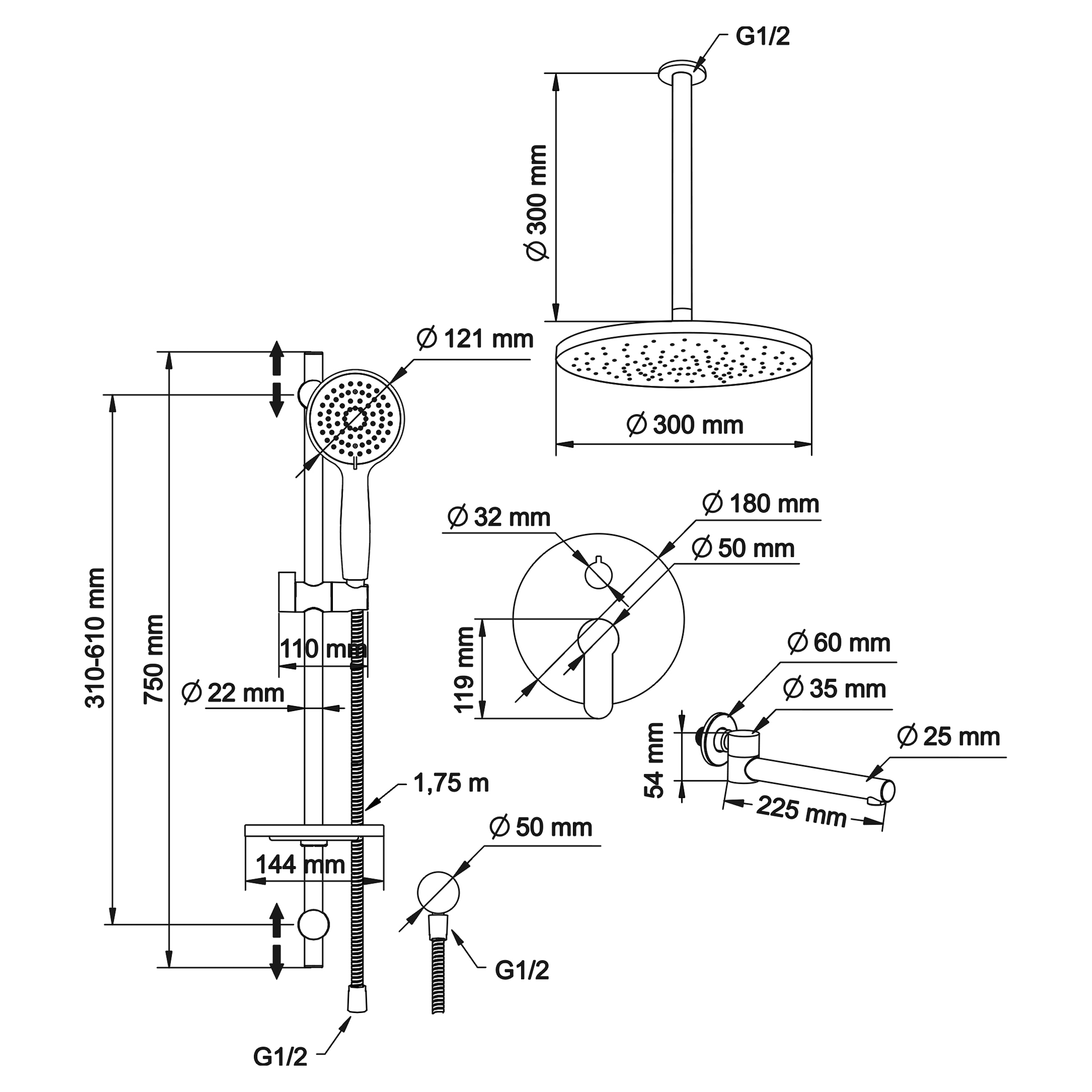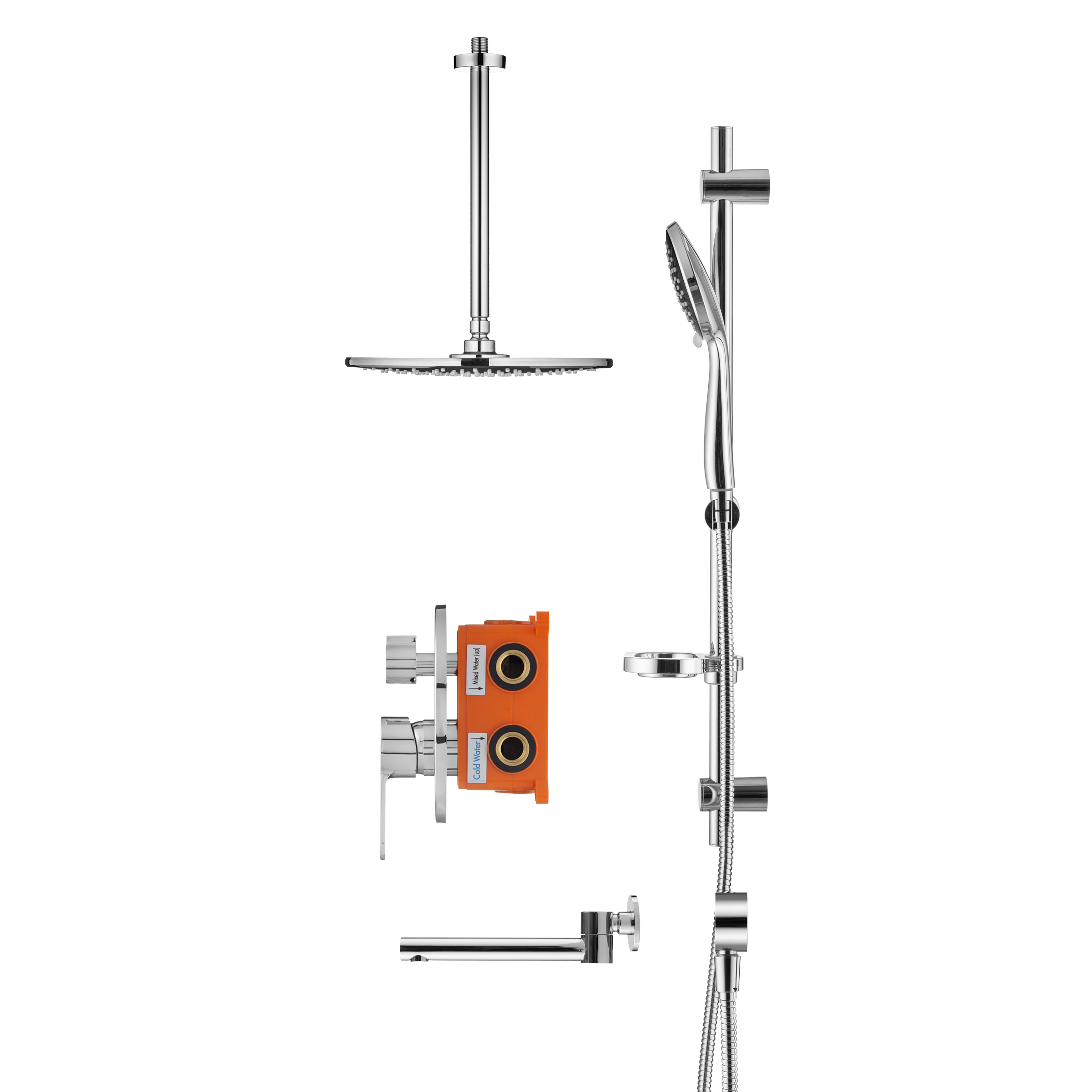 - верхний душ (душевая головка) с регулировкой наклона, потолочный монтаж