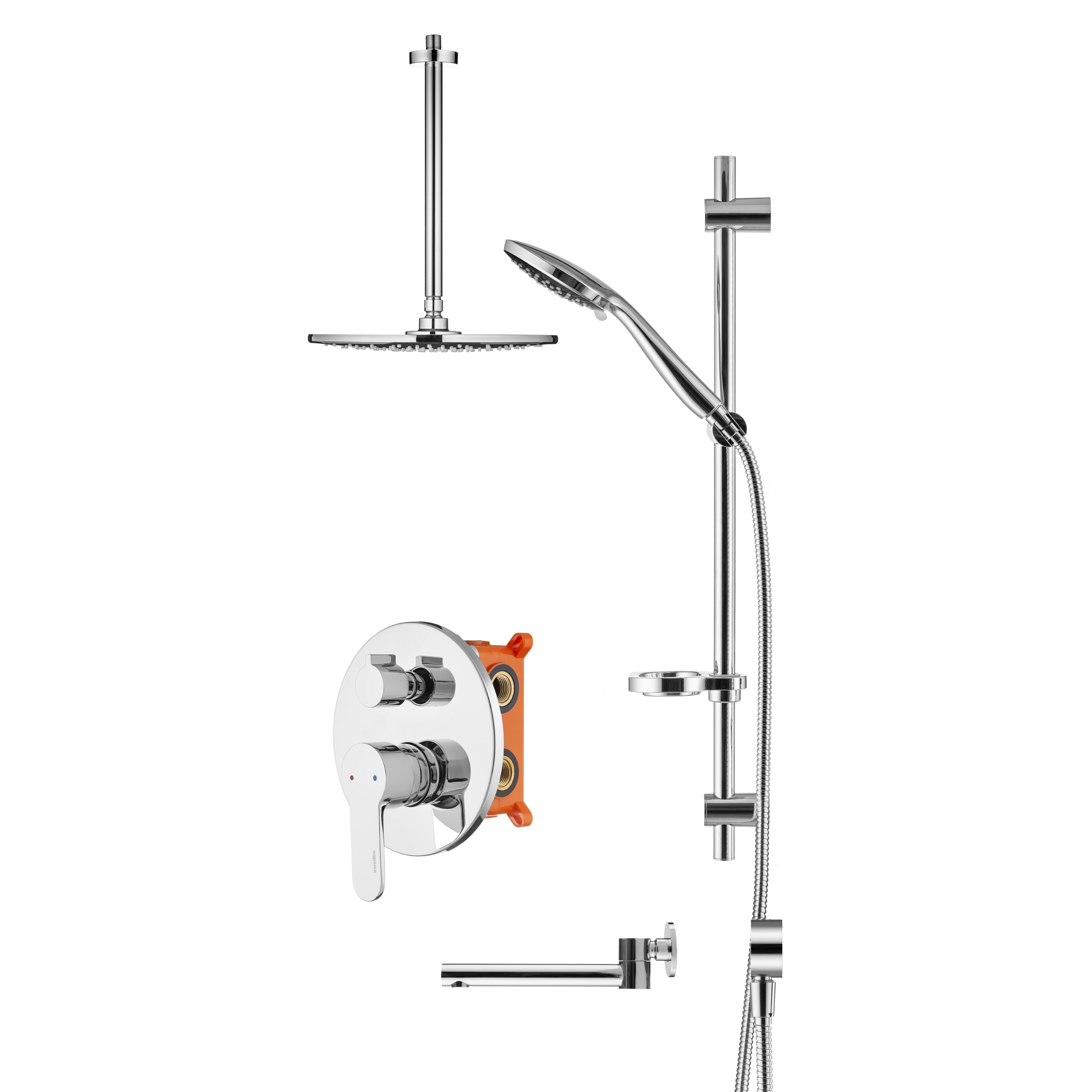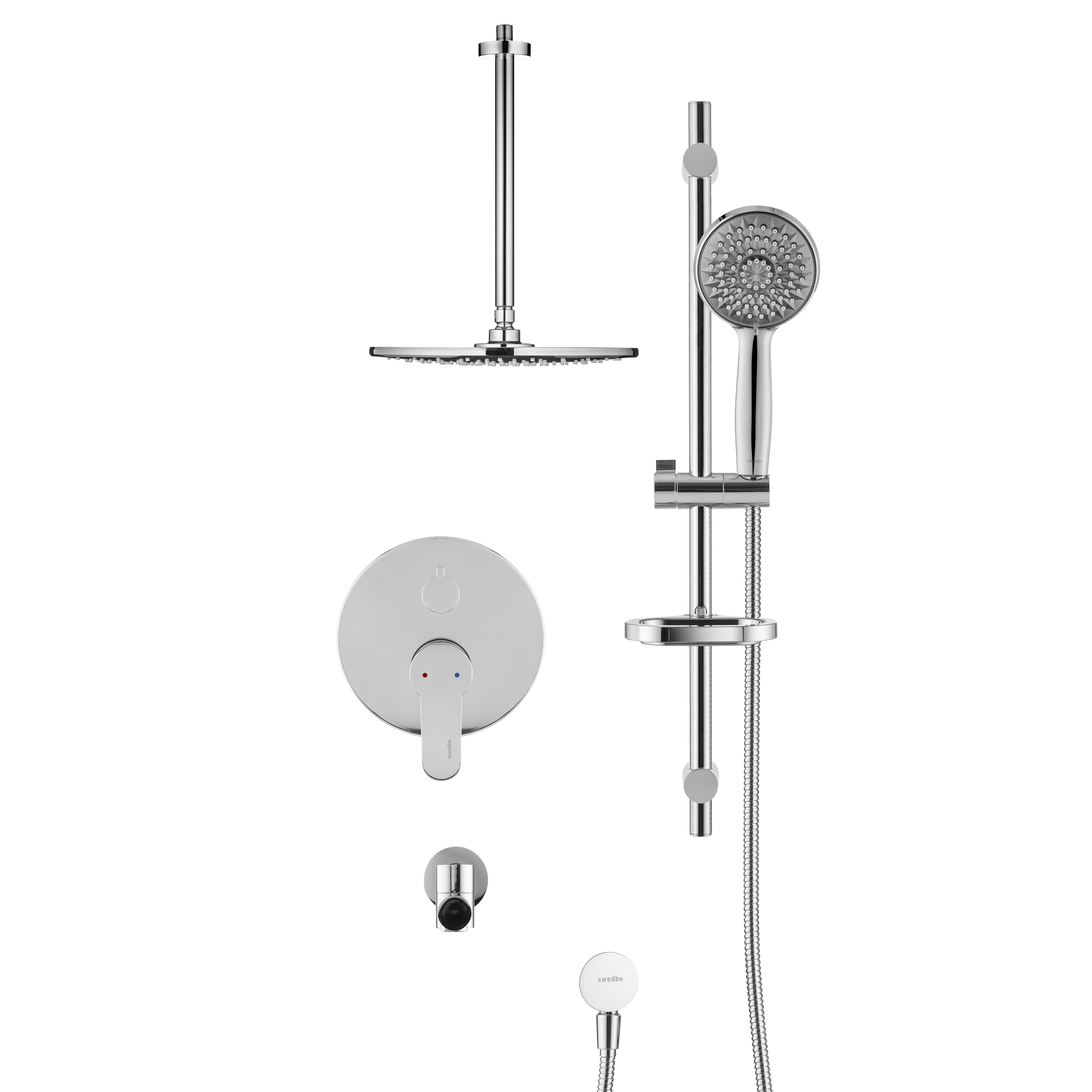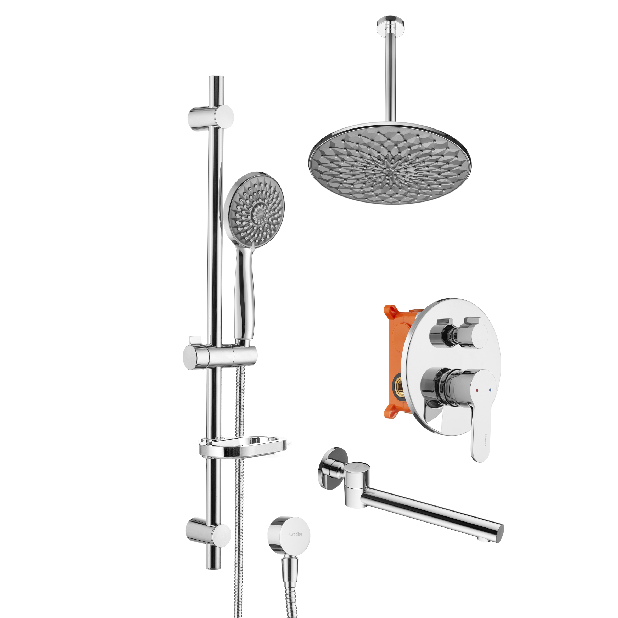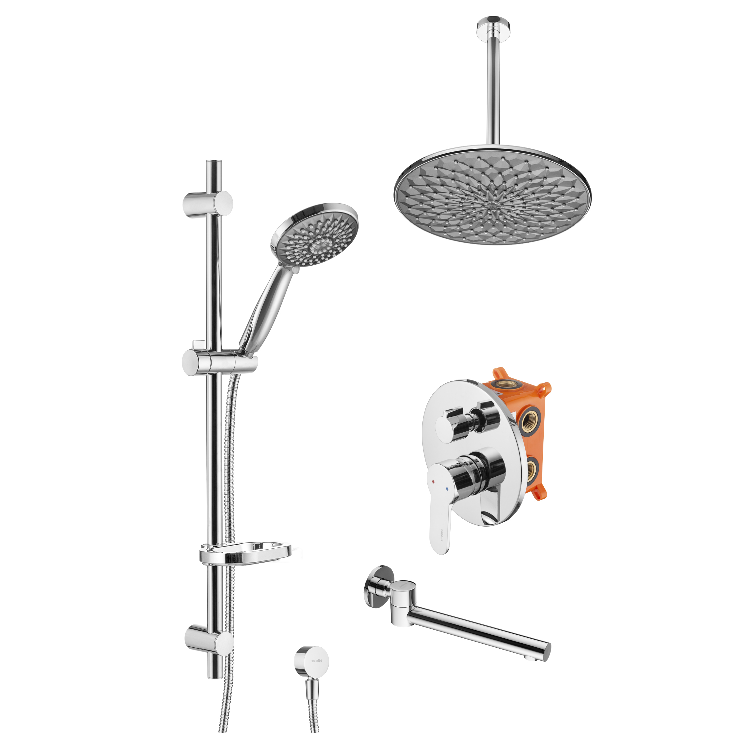 Смеситель для ванны и душа Swedbe Platta встраиваемый с верхним душем и повортн.изливом хром, серый (5543G1)