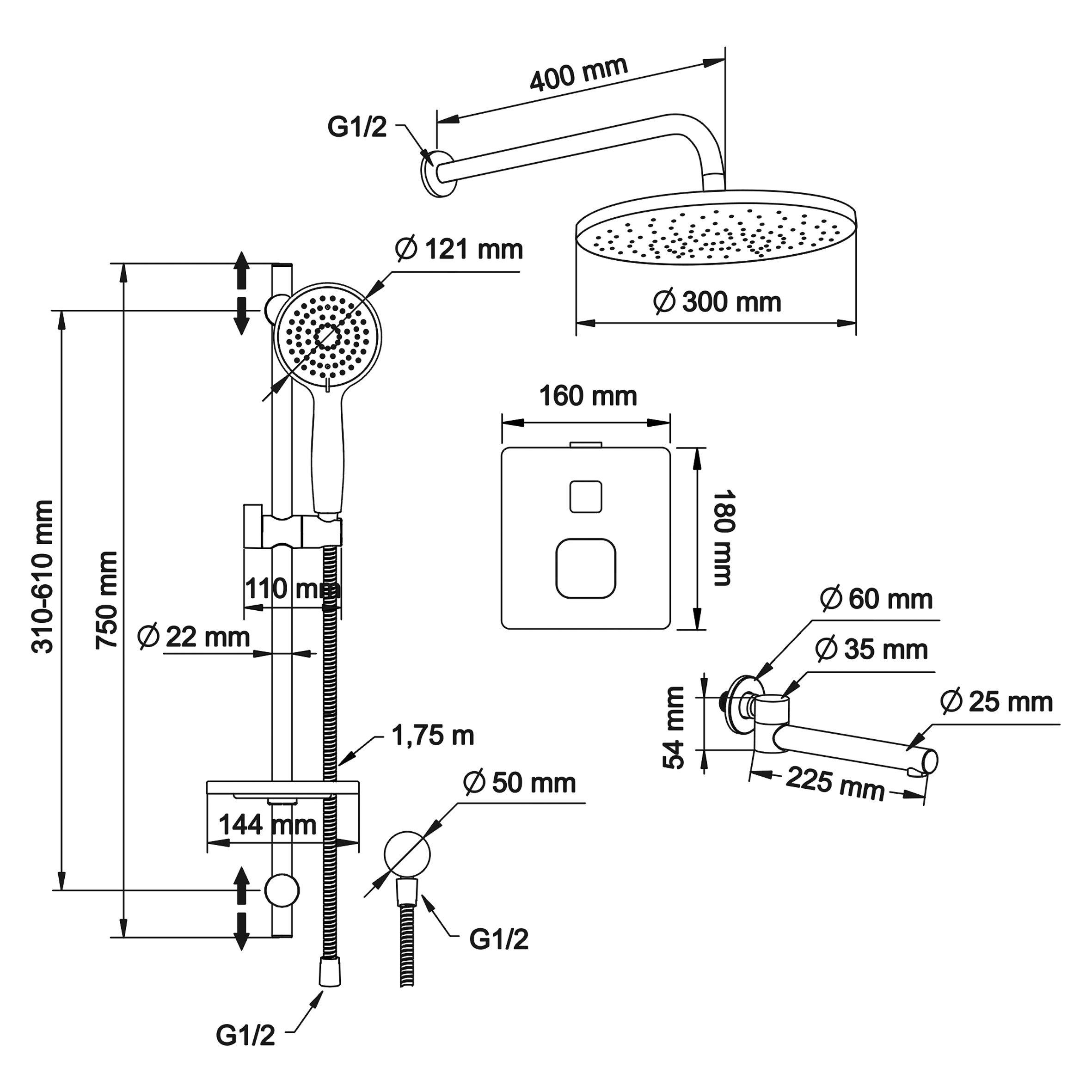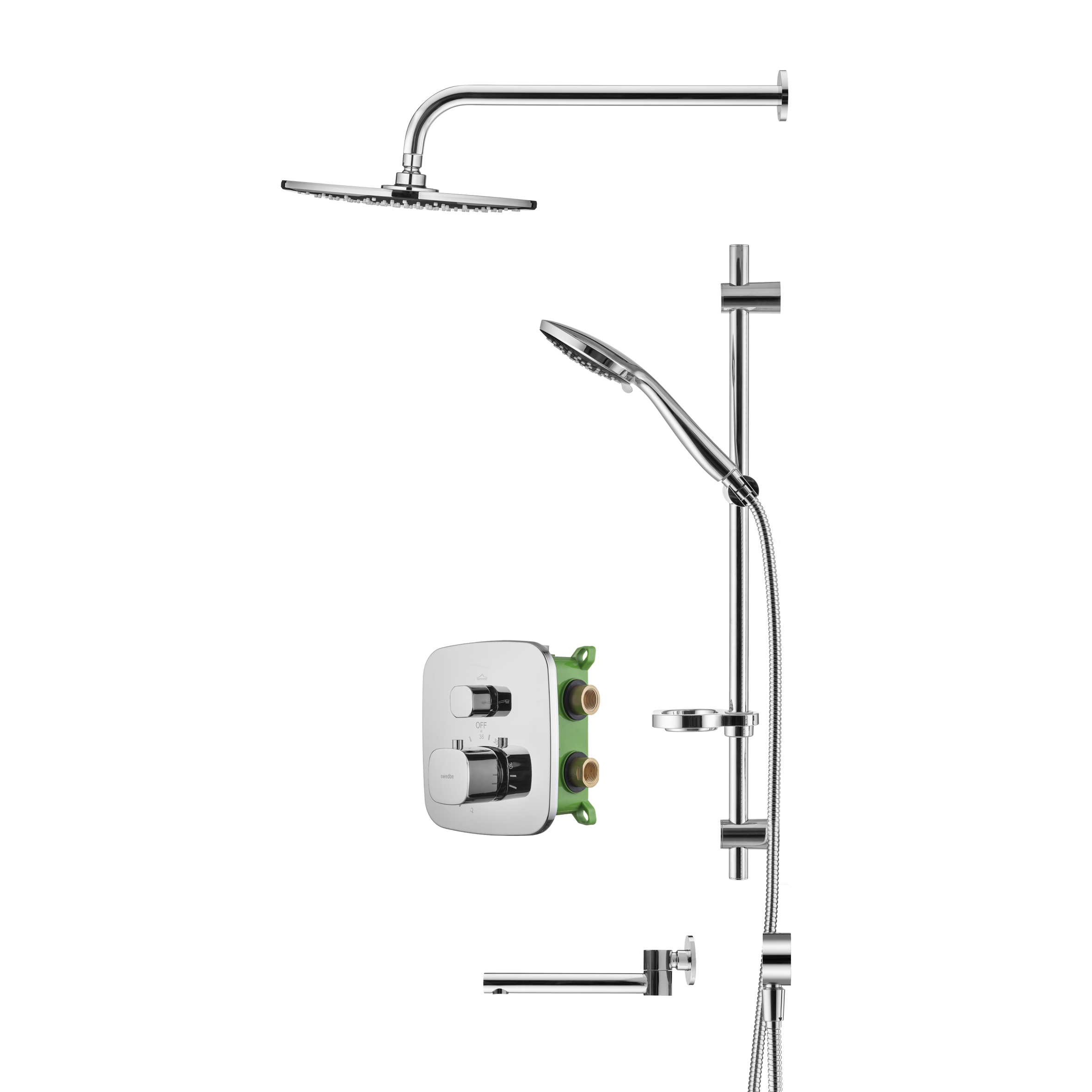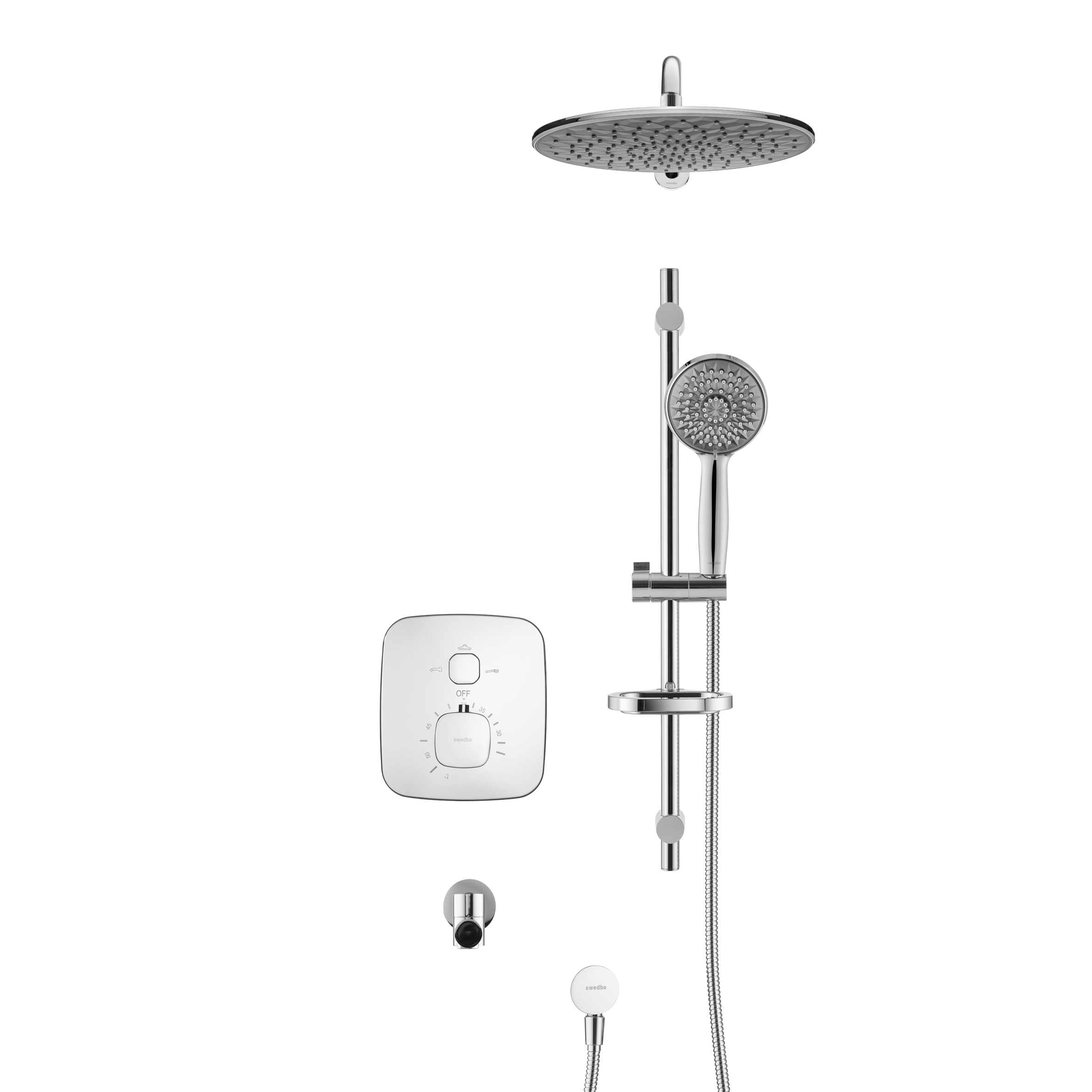 Смеситель для ванны и душа Swedbe Platta встраиваемый термостат с верхним душем и повортн.изливом хром, серый (5560G1)