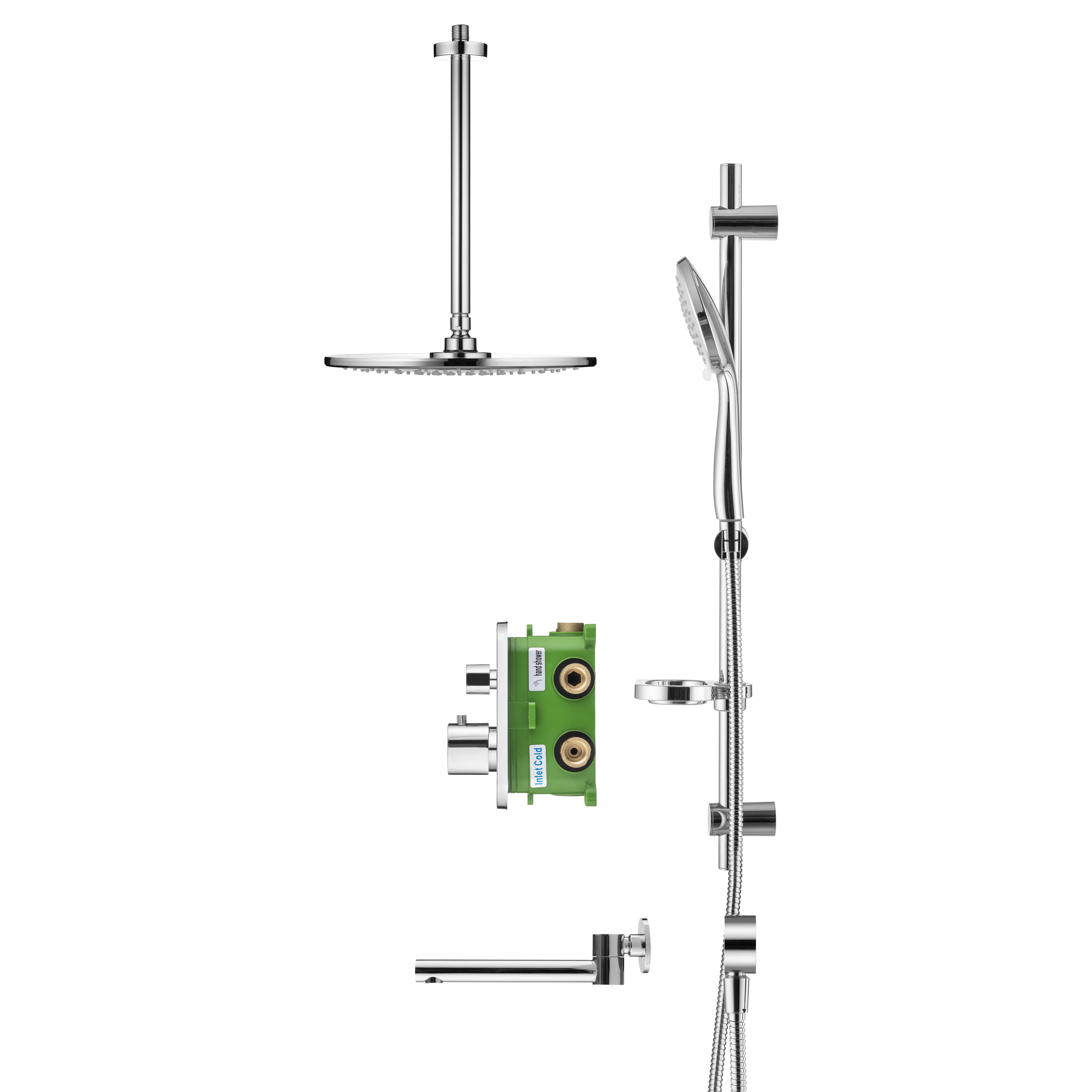 Смеситель для ванны и душа Swedbe Platta встраиваемый термостат с верхним душем и повортн.изливом хром (5561)