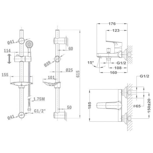 Смеситель для ванны и душа Teka Manacor с душевым набором 847101210