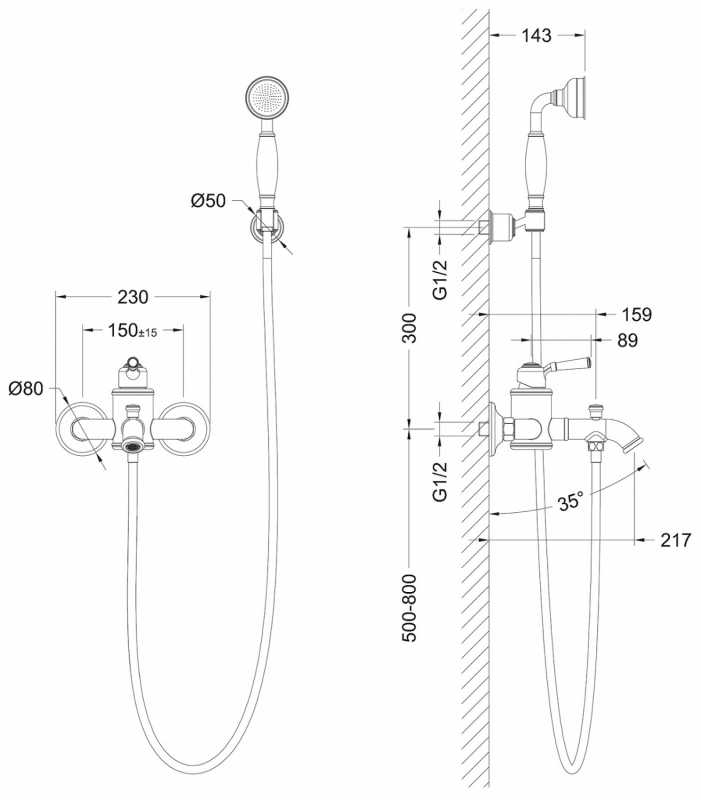 Смеситель для ванны и душа Timo Arisa черный, лейка душевая, шланг для душа, держатель (5314/03Y)