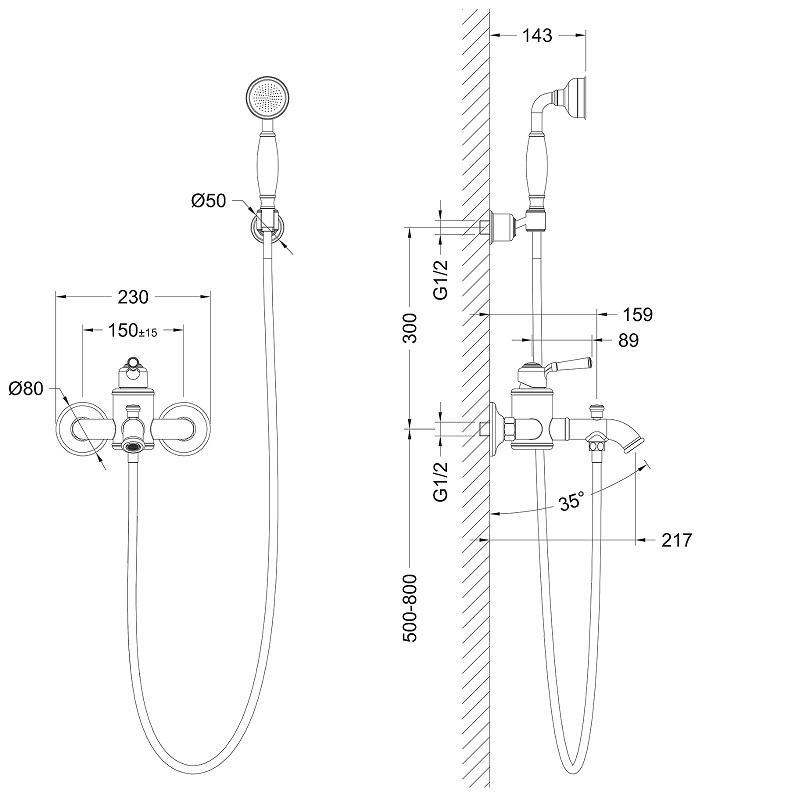 Смеситель для ванны и душа Timo Arisa хром, лейка душевая 2 режима, шланг для душа, держатель (5314/00Y)