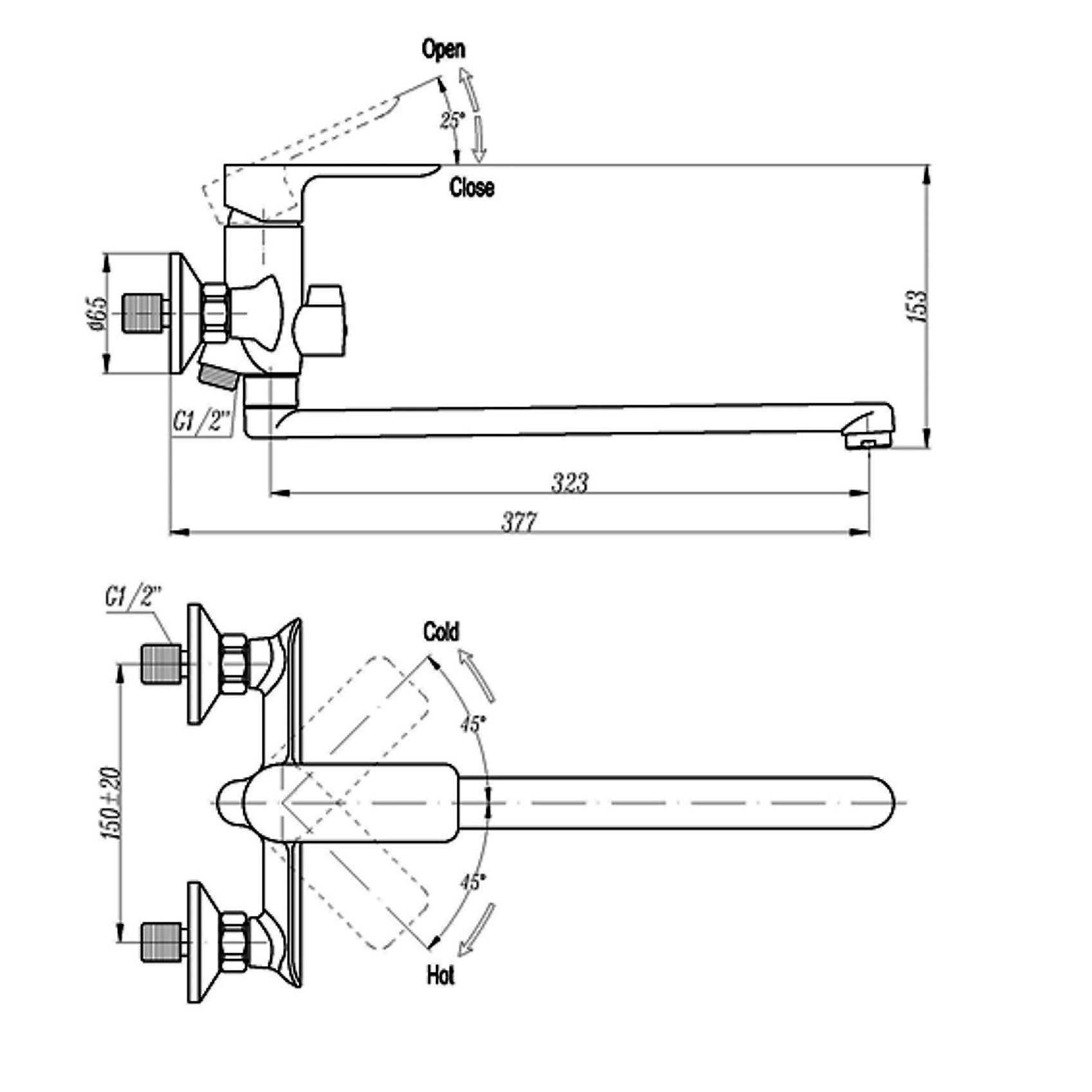 Стандартный монтаж на стену150*20 мм