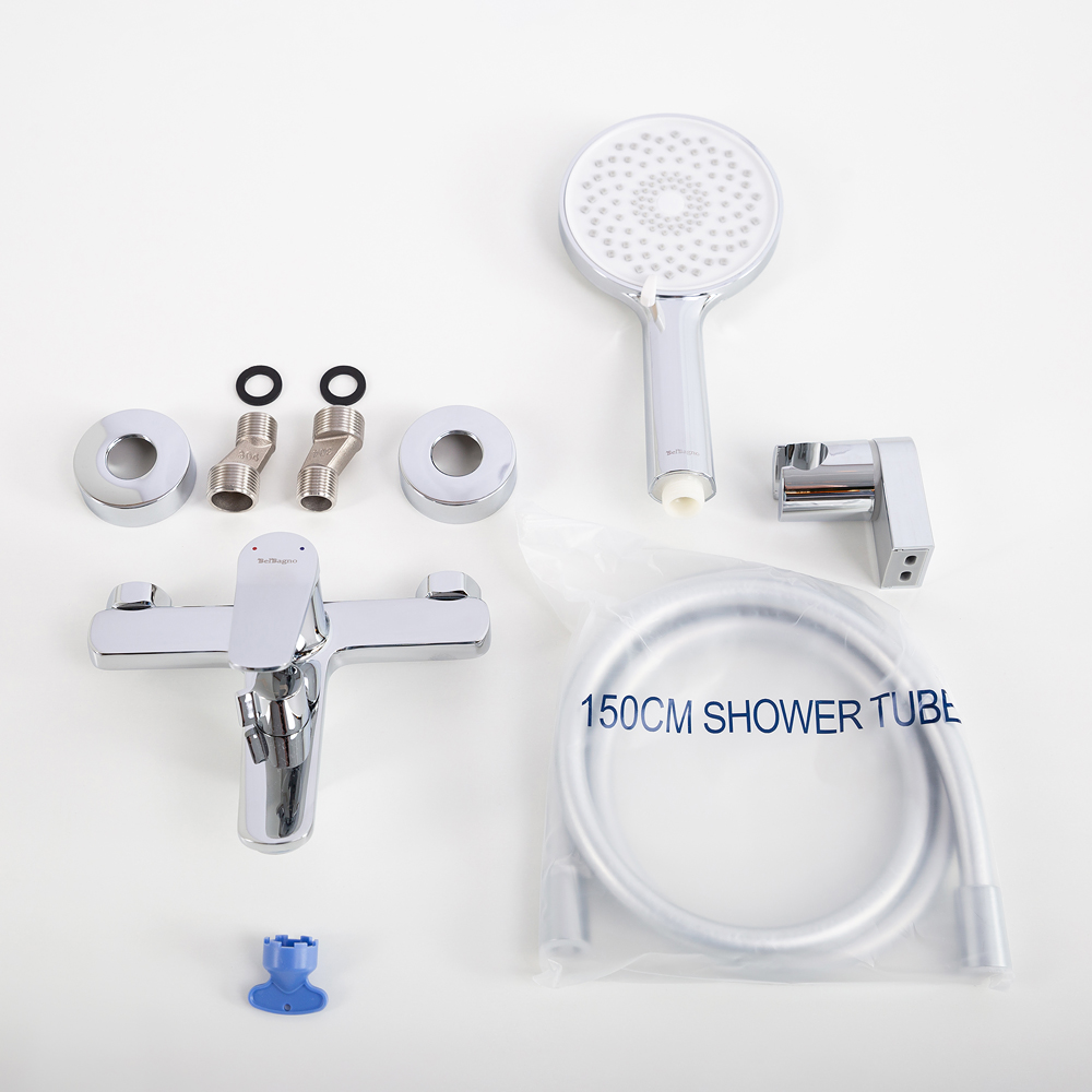 Смеситель для ванны и душа в комплекте с ручным душем, шлангом и держателем BelBagno (UNIQUE-VASM-CRM)