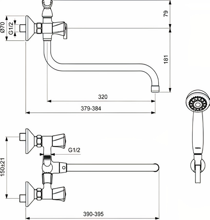 - Переключатель душ/излив.
