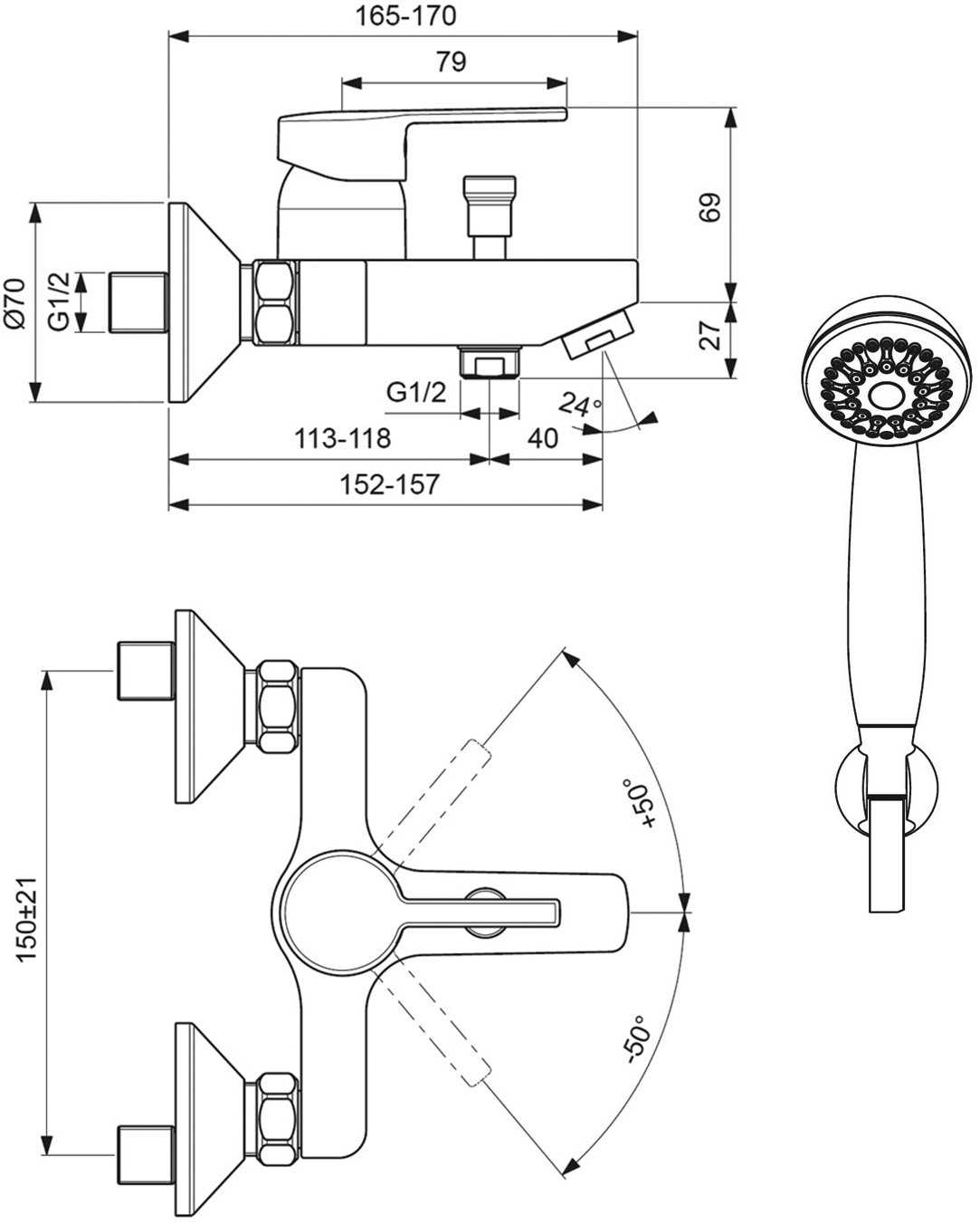 - 1-режимная лейка с функцией легкой очистки и настенным держателем.