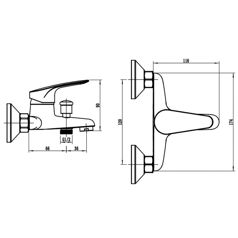 Смеситель для ванны и душа Voda Land хром (LND54)