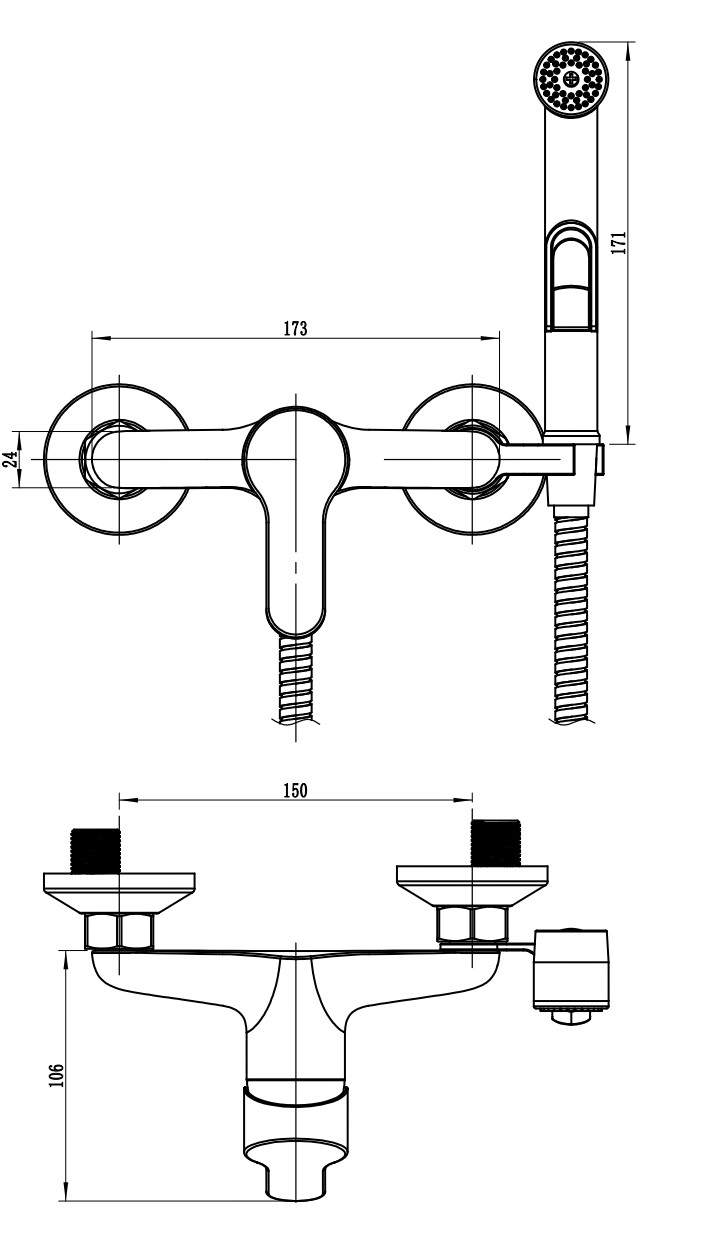 Смеситель для ванны и душа Voda Tide хром (TD80H)