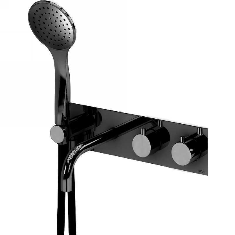 Смеситель для ванны и душа встраиваемый Cezares CZR термостатический на 3 выхода, с ручным душем, черный матовый (CZR-B-VDM2-T-NOP)
