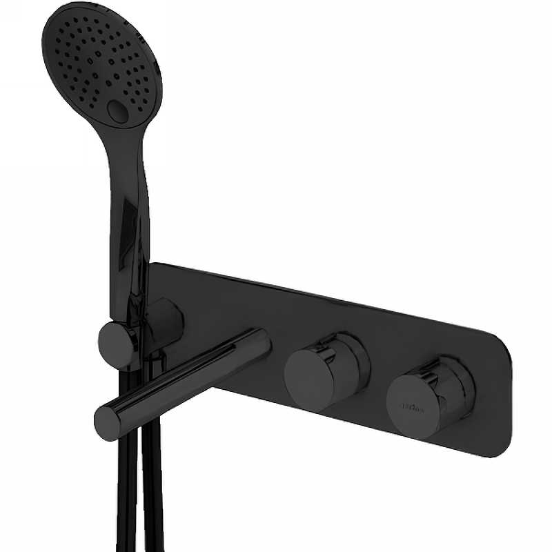 Смеситель для ванны и душа встраиваемый Cezares CZR термостатический с ручным душем, черный матовый (CZR-B-VDM1-T-NOP)
