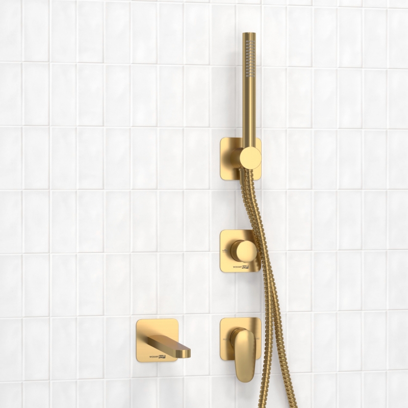 Смеситель для ванны и душа встраиваемый для ванны с лейкой и изливом WasserKRAFT матовое золото (A3651.282.284.285.194.286)