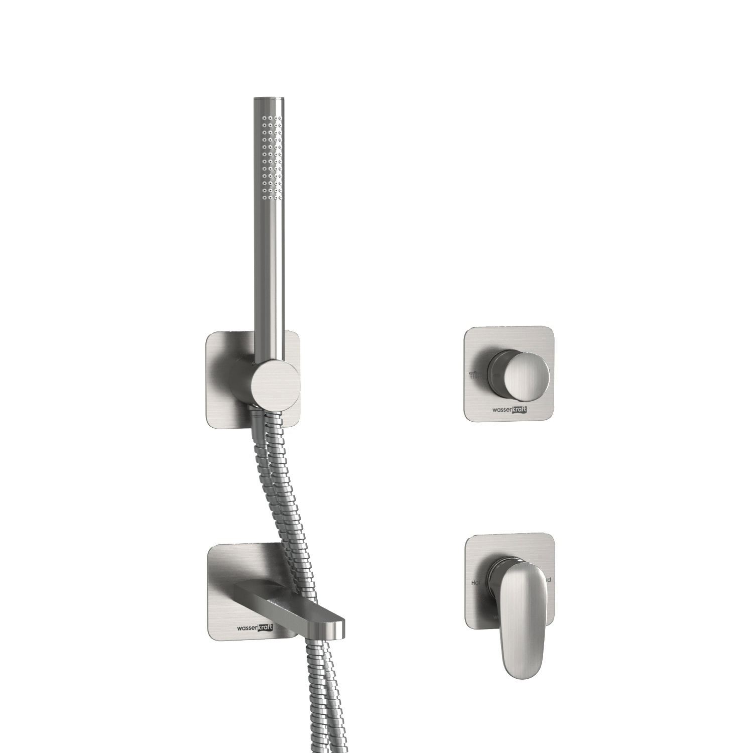 Смеситель для ванны и душа встраиваемый для ванны с лейкой и изливом WasserKRAFT никель (A1451.272.274.275.100.276)
