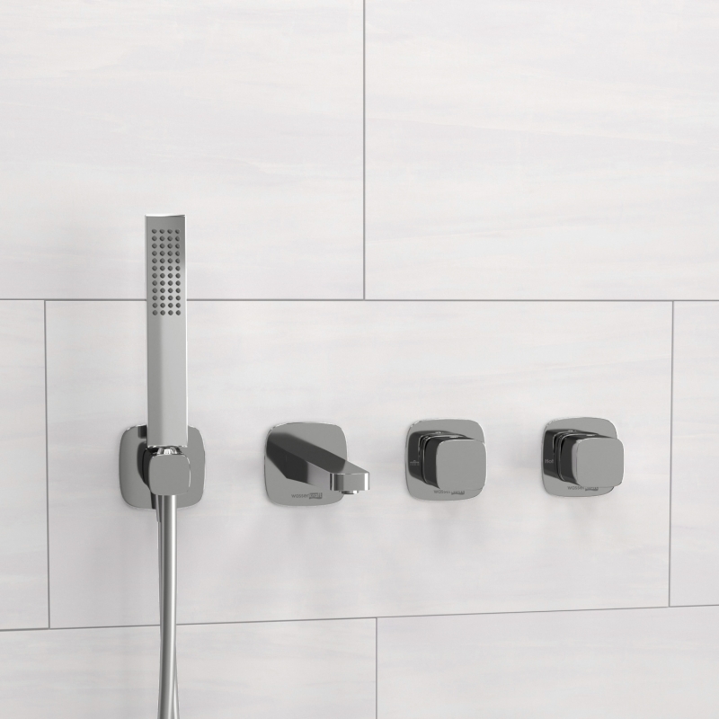 Смеситель для ванны и душа встраиваемый с лейкой и изливом WasserKRAFT хром (A8651.312.314.326.087.103)