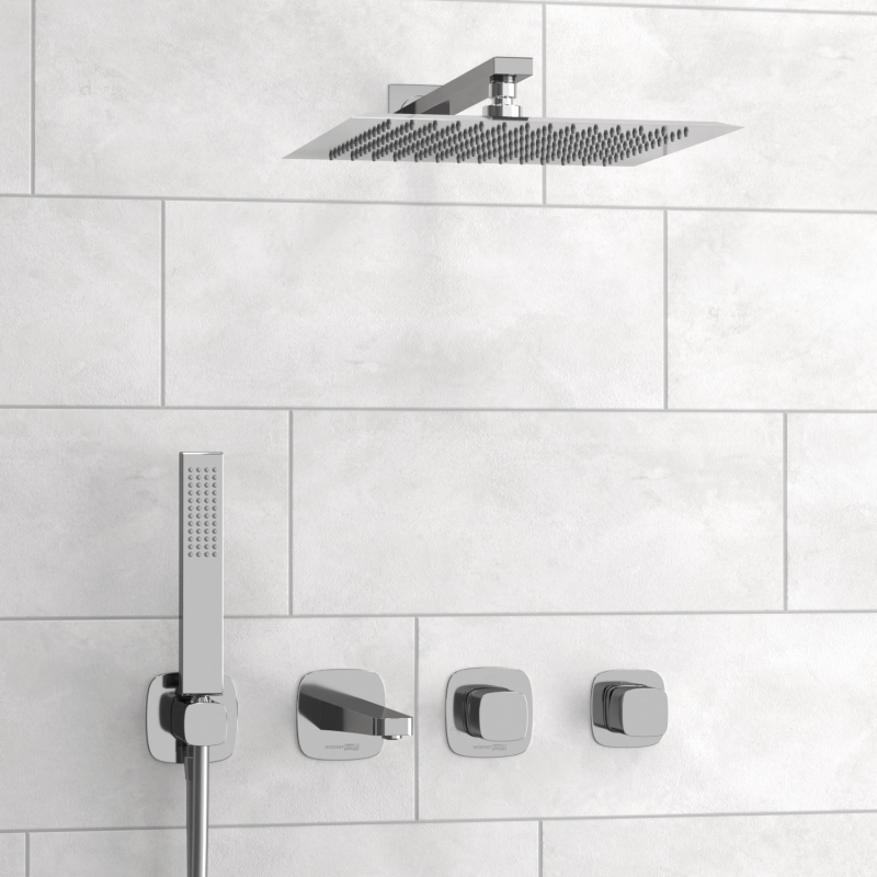 Смеситель для ванны и душа встраиваемый с верхней душевой насадкой, лейкой WasserKRAFT хром (A8651.313.314.090.118.326.087.103)
