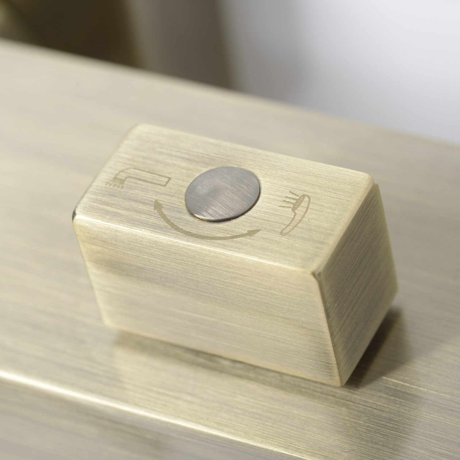 В данных моделях смесителя используется керамический поворотный переключатель на душ. Для переключения на душ или излив необходимо повернуть переключатель на 90°. Переключатель работает даже при нулевом давлении воды.