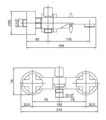 Излив 253 мм, расстояние между центрами 150 мм