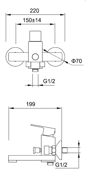 Вращающийся излив 199 мм, расстояние между центрами 150мм