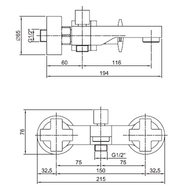 Излив 194 мм, расстояние между центрами 150 мм