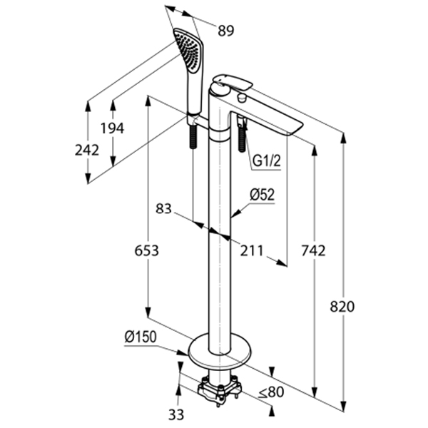 Смеситель для ванны напольный Kludi Balance с душевым гарнитуром (525909175)