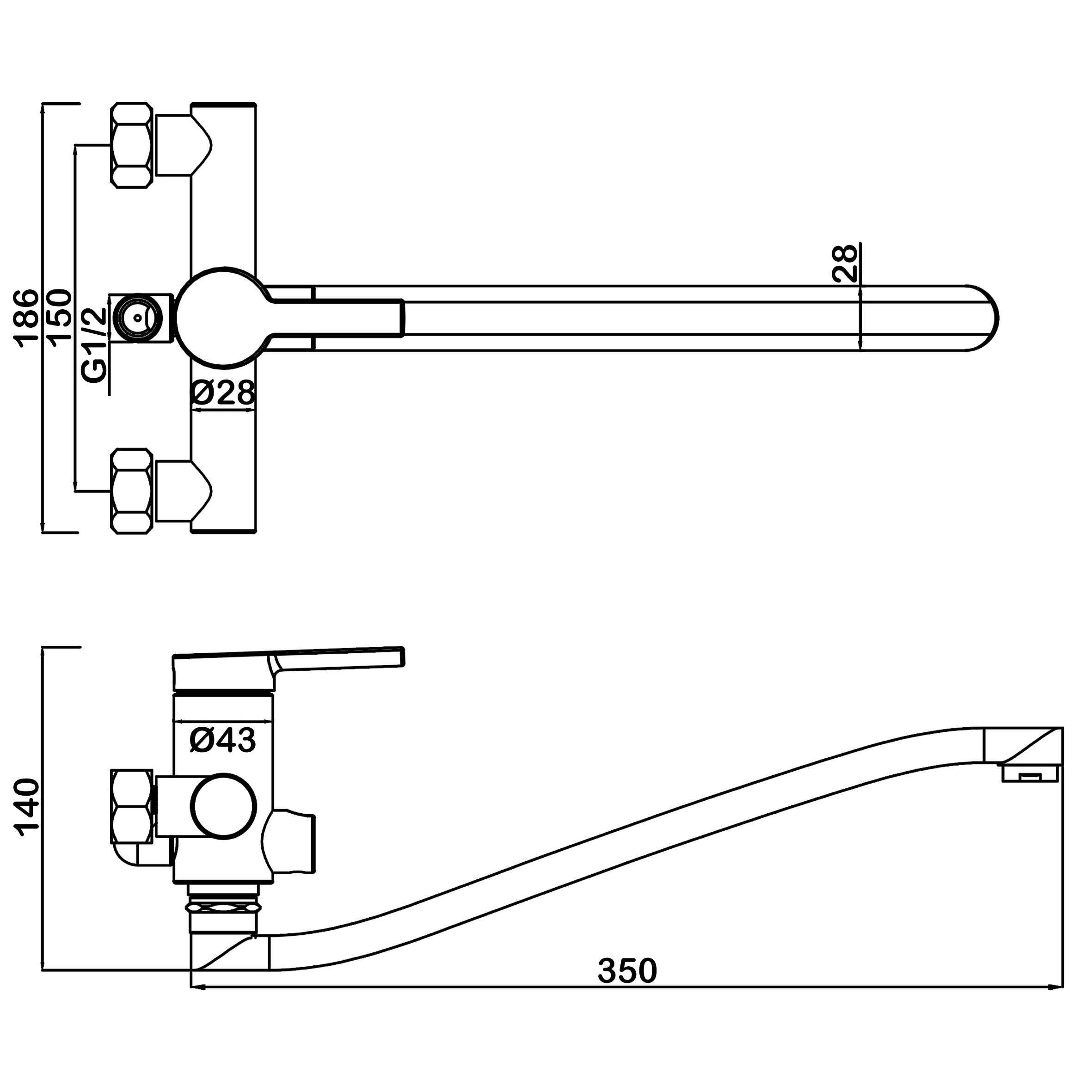 Смеситель для ванны Swedbe Diana 1055 с длинным изливом S-формы хром (1055)