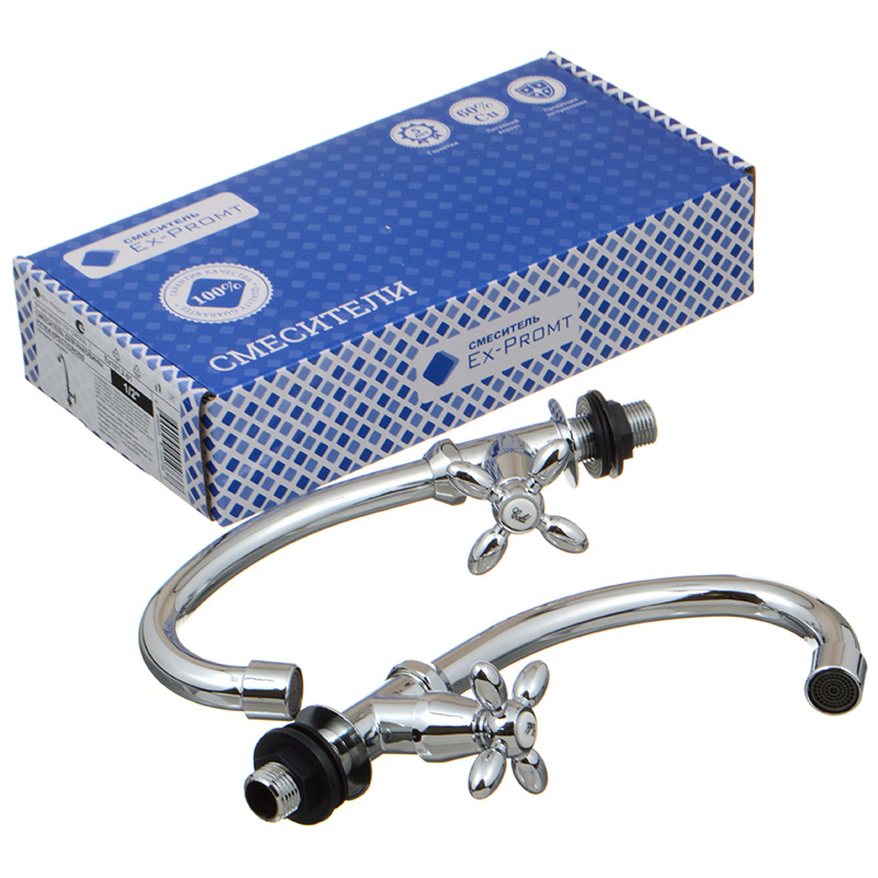 Смеситель моно Ex-Promt пластик ручка Крест 1/2"" керамика Ex 101.2-01 ( 2 шт.в кор.) стильный одноручный смеситель для кухни. Встроенный в излив смесителя аэратор смешивает струю воды с воздухом и делает струю воды нежнее и мягче. Смеситель оснащен надёжной керамической кран-буксой с большим сроком службы. Однозахватный рычаг управления позволит вам регулировать напор воды. Излив поворачивается на 360°. В упаковке 2 смесителя.