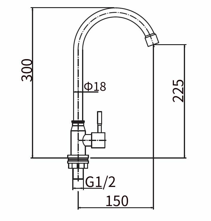 излив: D=18 мм, H=225 мм
