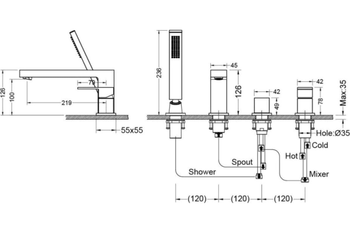 Смеситель на борт ванны Aquatek Либра хром (AQ1648CR)