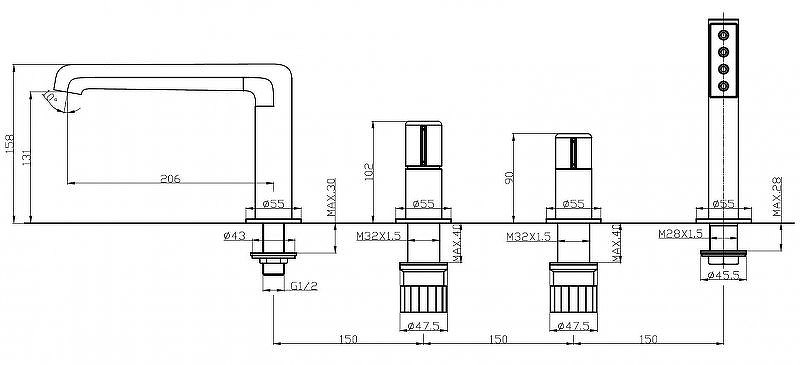 Смеситель на борт ванны BelBagno Uno (UNO-BVD4-CRM)