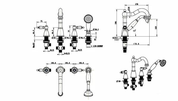 Смеситель на борт ванны Boheme Royal Cristal хром с душевым комплектом (396-Royal/CRST)