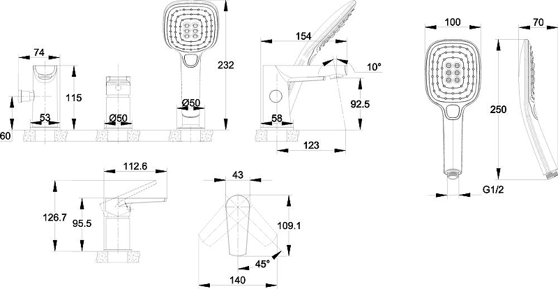 Смеситель на борт ванны Cersanit Moduo хром (64100)