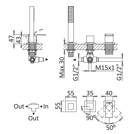 Смеситель на борт ванны Cezares Porta с выдвижным душем и переключателем, sunrise (PORTA-BVDM3-SR)