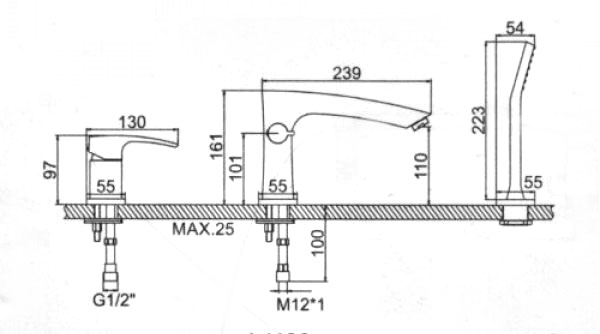 Смеситель LEDEME L1198 предназначен для установки на борт, как правило, акриловой ванны и рассчитан на три отверстия: ручка включения подачи горячей и холодной воды, кран с переключателем лейка/кран и душевая лейка со шлангом.