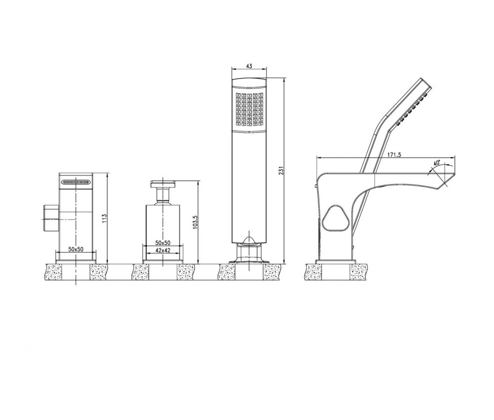 - Смеситель комплектуется душевой лейкой размером 43х48 мм.