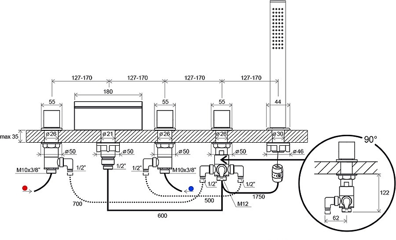 Смеситель на борт ванны Ravak WF 025.00 хром (X070060)