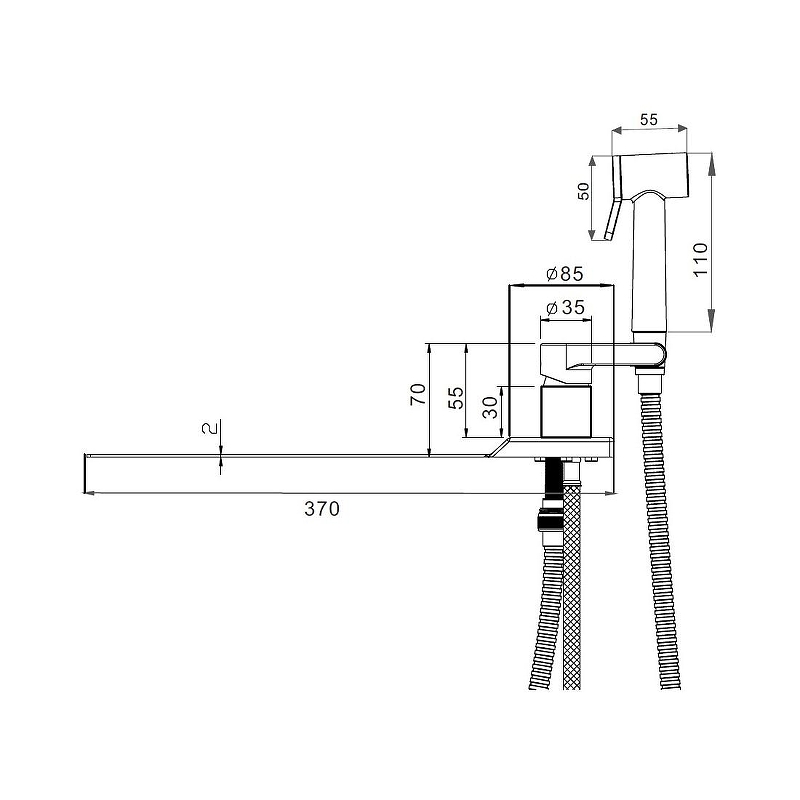 Аксессуары в комплекте (шланг 0,9 м, лейка для биде)