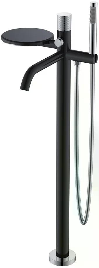 Смеситель напольный Boheme Stick черный с душевым комплектом (129-BCR)