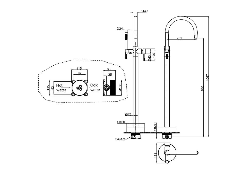 смеситель, душевой шланг, ручной душ, держатель для душевой лейки, крепления