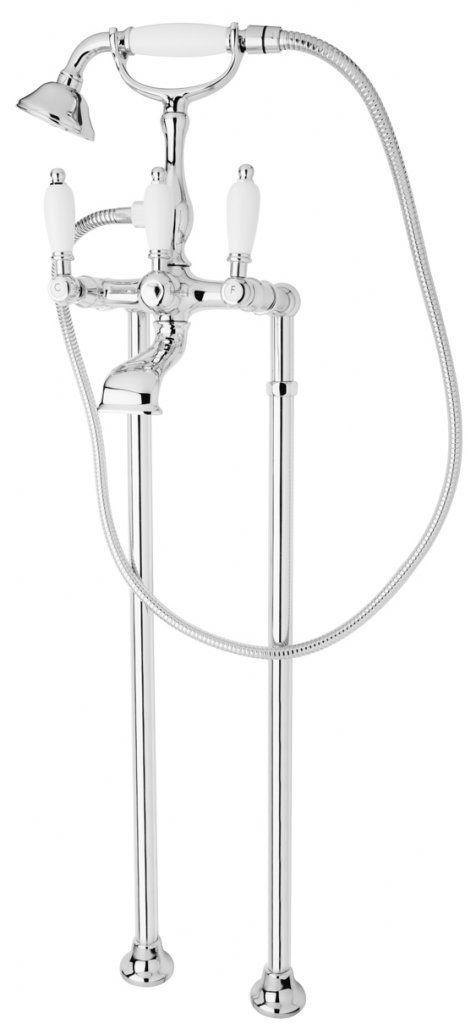 Напольный смеситель для ванны, исполнение хром, ручки белые.