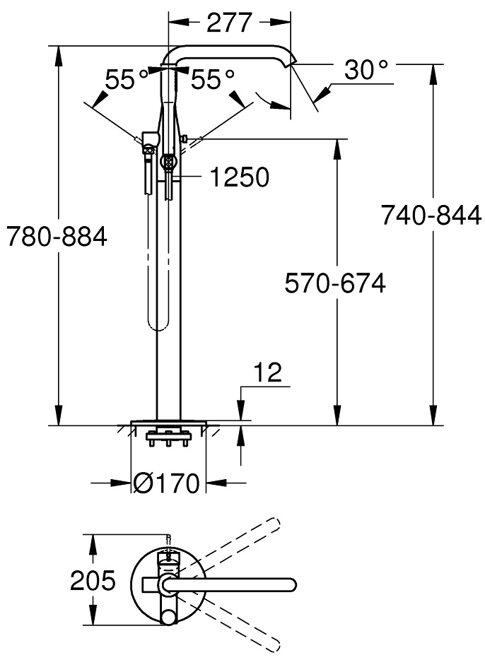 Смеситель напольный для ванны и душа Grohe Essence New (23491DL1)