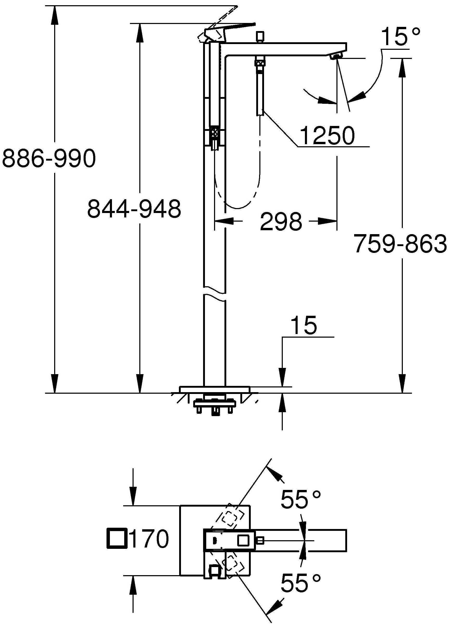 Смеситель напольный для ванны и душа Grohe Eurocube (23672AL1)